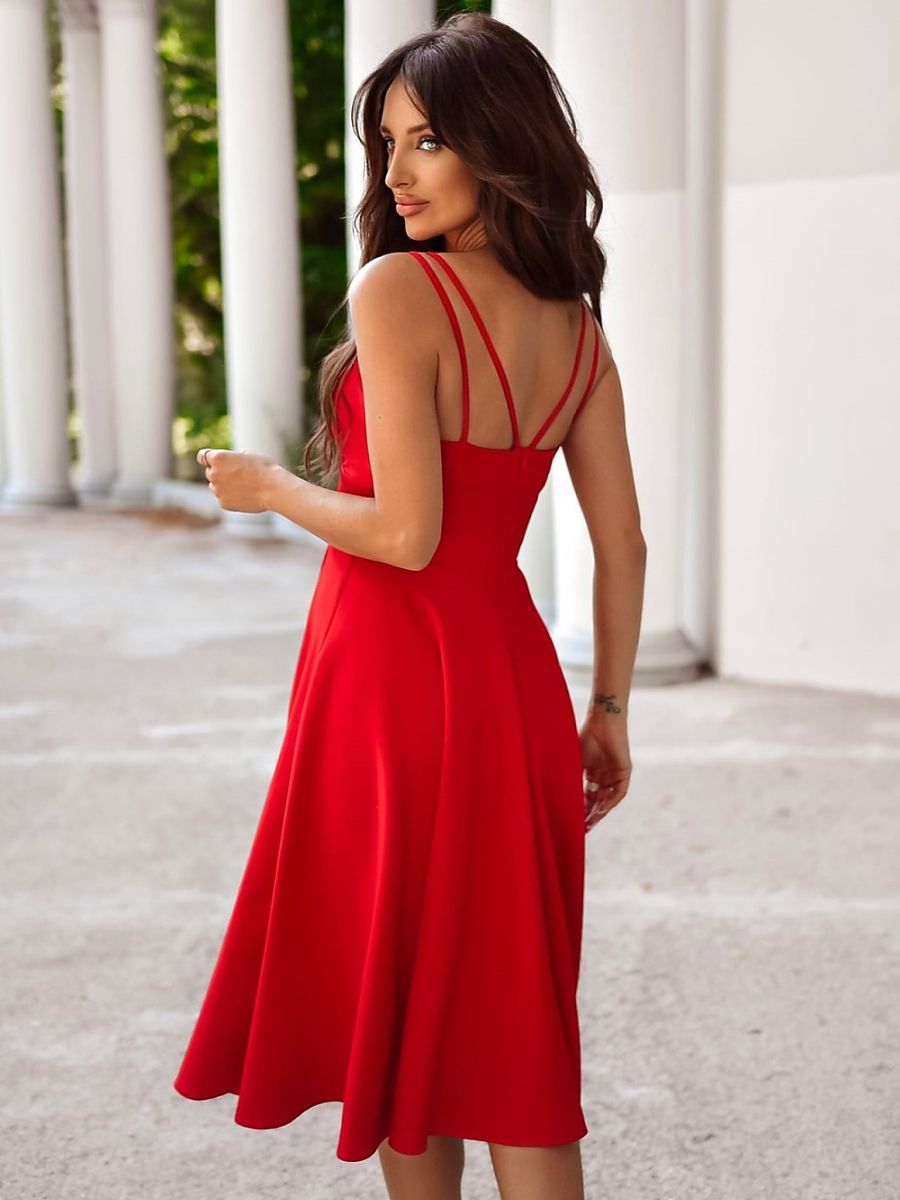 Dress with a length of 7/8 with straps, deep wrap neckline, cut under the bust. Flared bottom. An ideal proposition for many occasions.