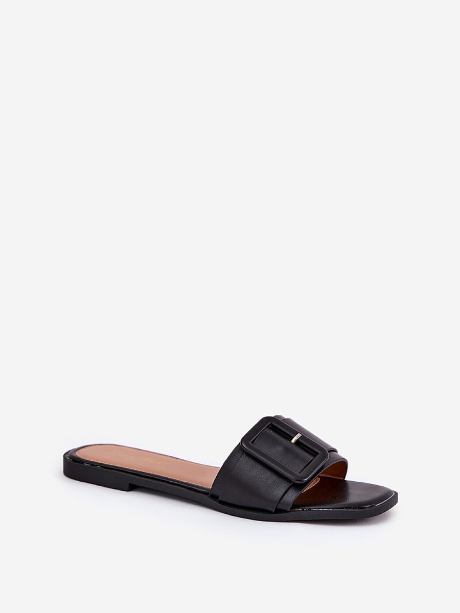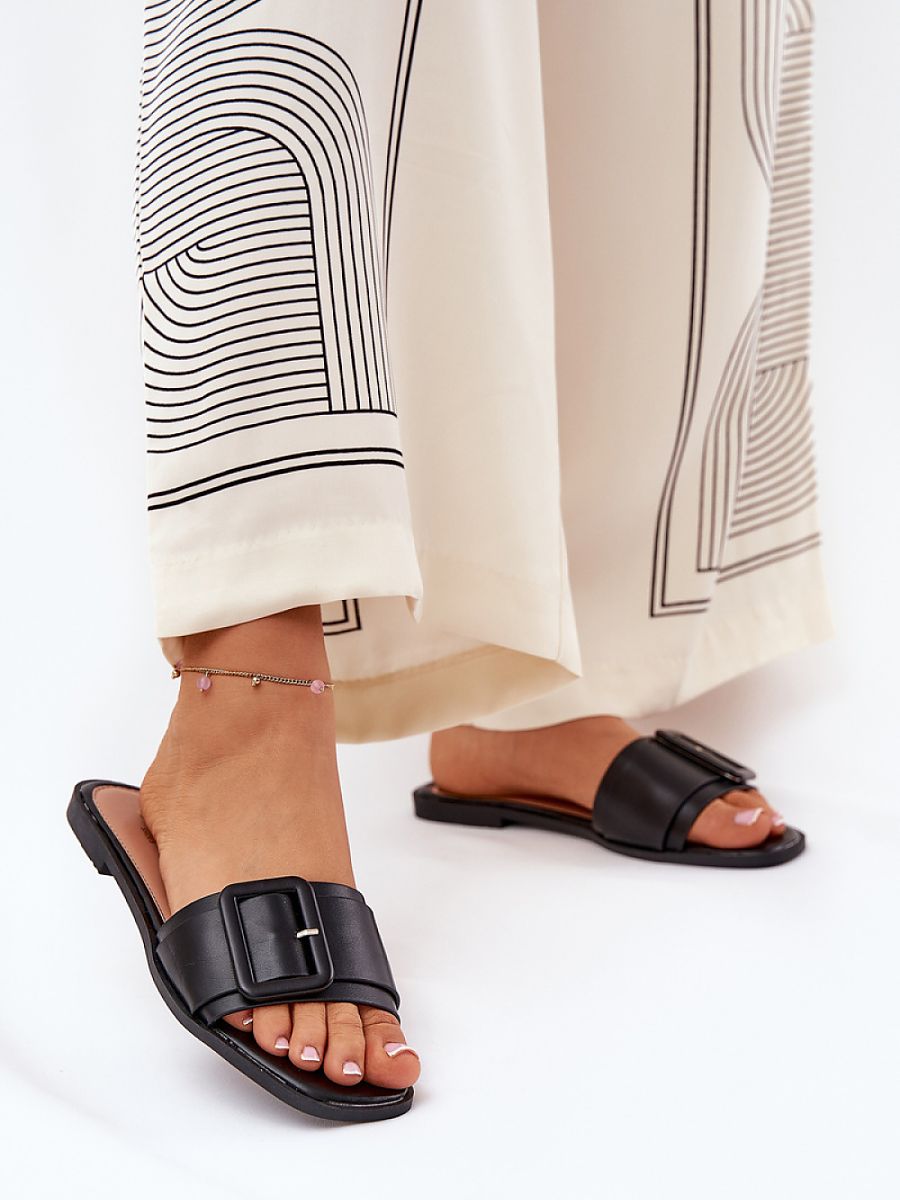Classic women’s flip flops made of eco-leather, set on a flat heel, which combine comfort with an elegant look. A large buckle on the strap adds a subtle character to them. Perfect for everyday wear, these flip flops perfectly complement summer outfits, providing comfort and simple elegance throughout the day.