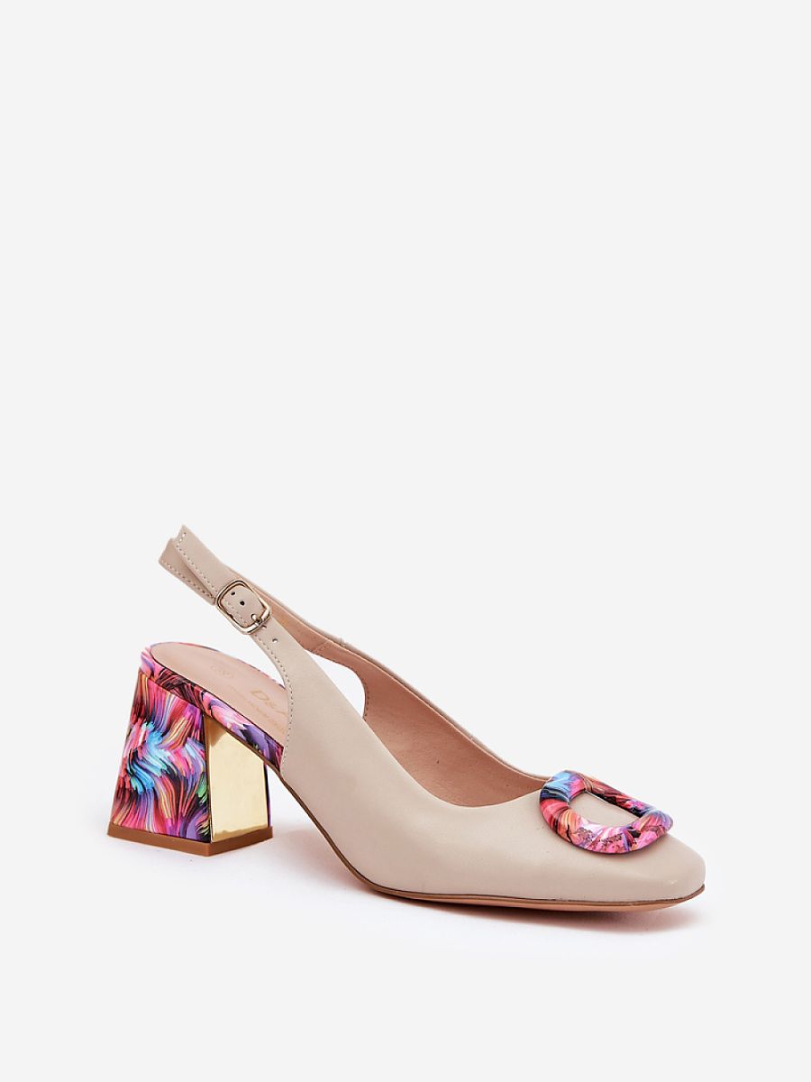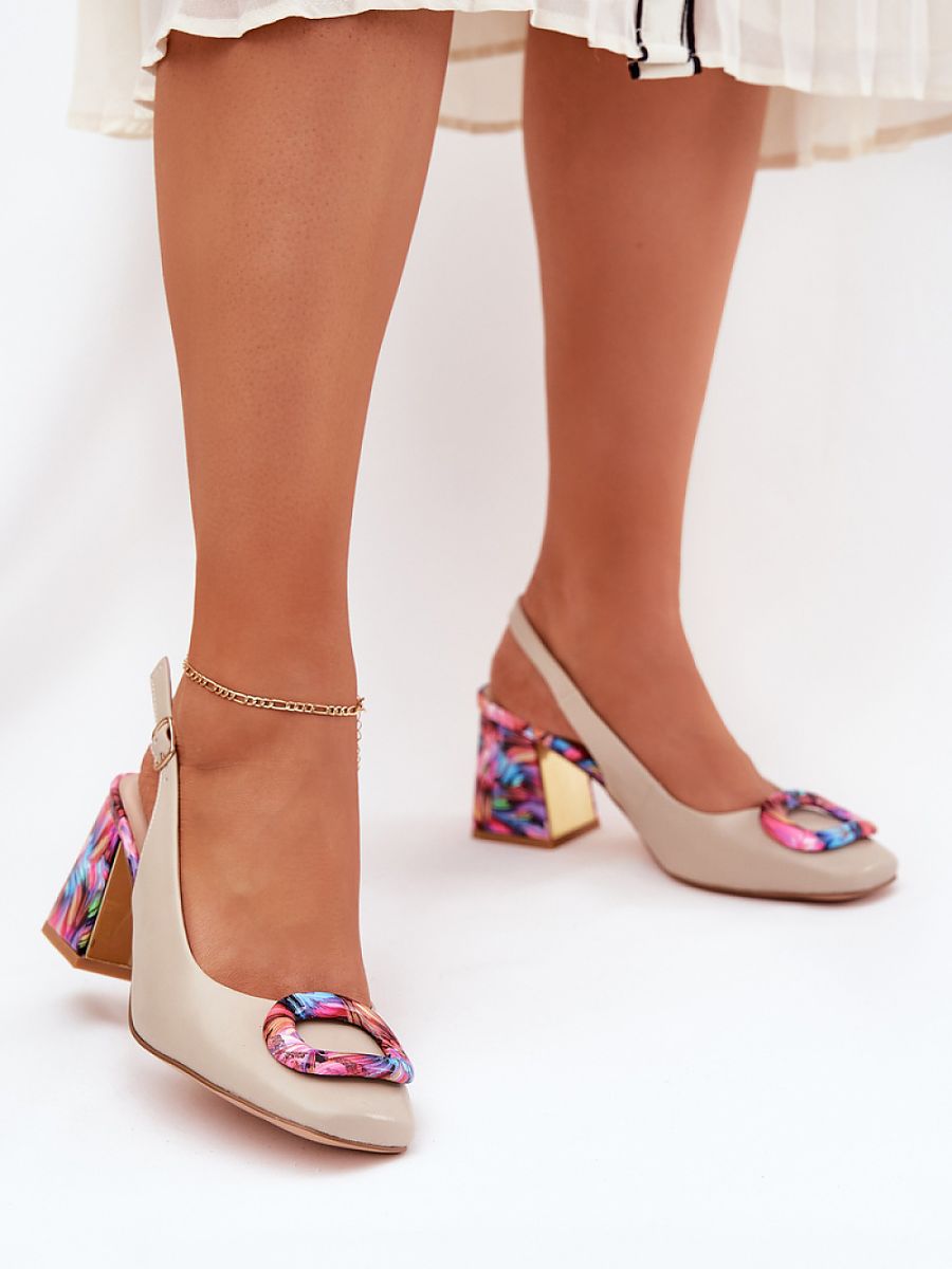 Elegant women’s sandals made of natural leather are a combination of style and comfort in one. The toes are covered, giving them a classic character, and a decorative detail placed at the front further emphasizes their unique character. The heel, adorned with an interesting pattern, perfectly complements the whole, providing stability and comfort. The sandals are fastened with an adjustable strap with a buckle, allowing for a perfect fit to the foot, and the leather, soft insole guarantees comfort throughout the day. Perfect for various occasions.