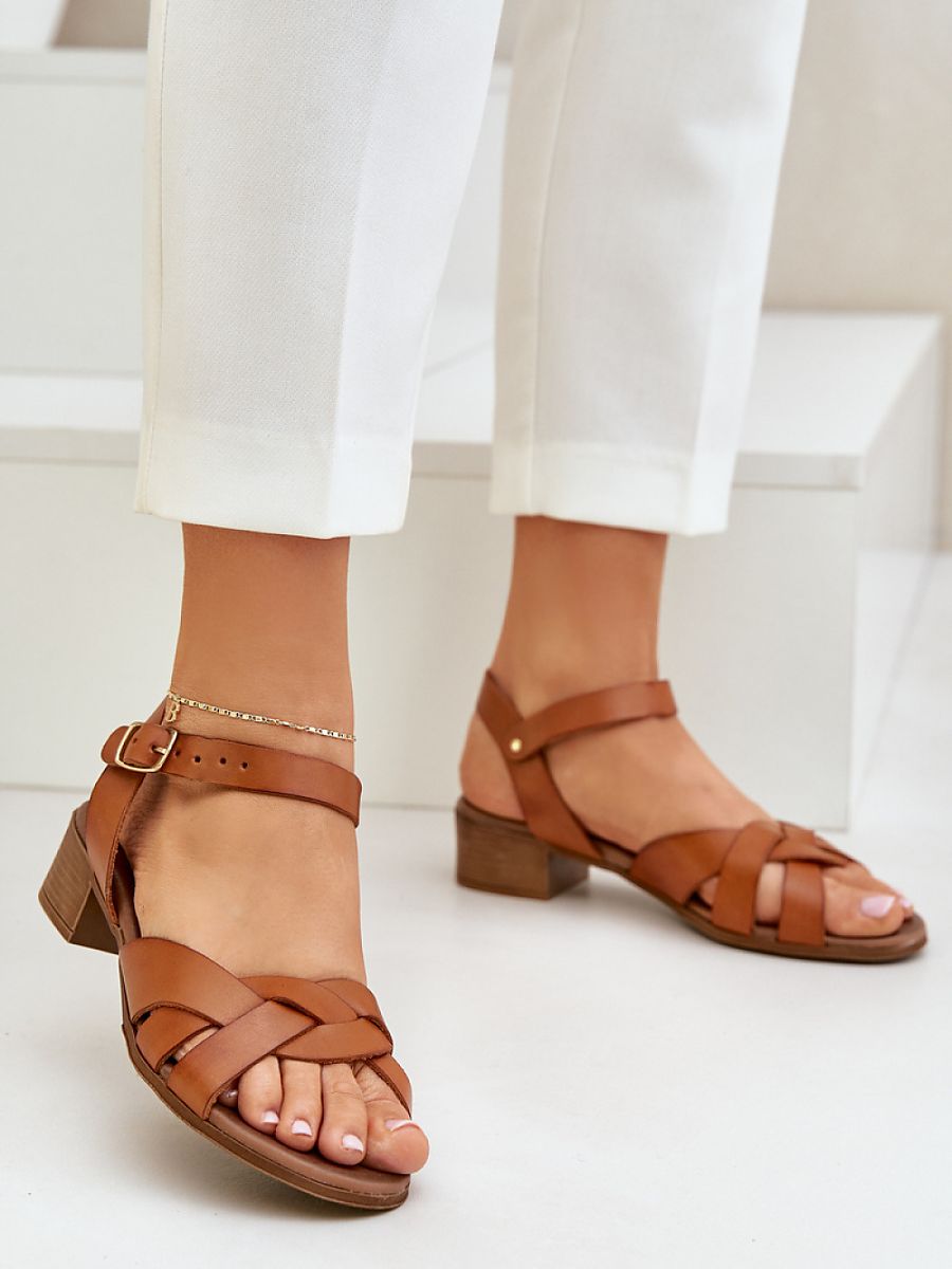 Sandals made of natural leather are an elegant and comfortable option for warm days. Set on a low heel, they provide comfort and stability while walking. Fastened with an adjustable strap, allowing for a perfect fit to the foot. In the front, intertwining straps. These sandals are a perfect choice for summer days!