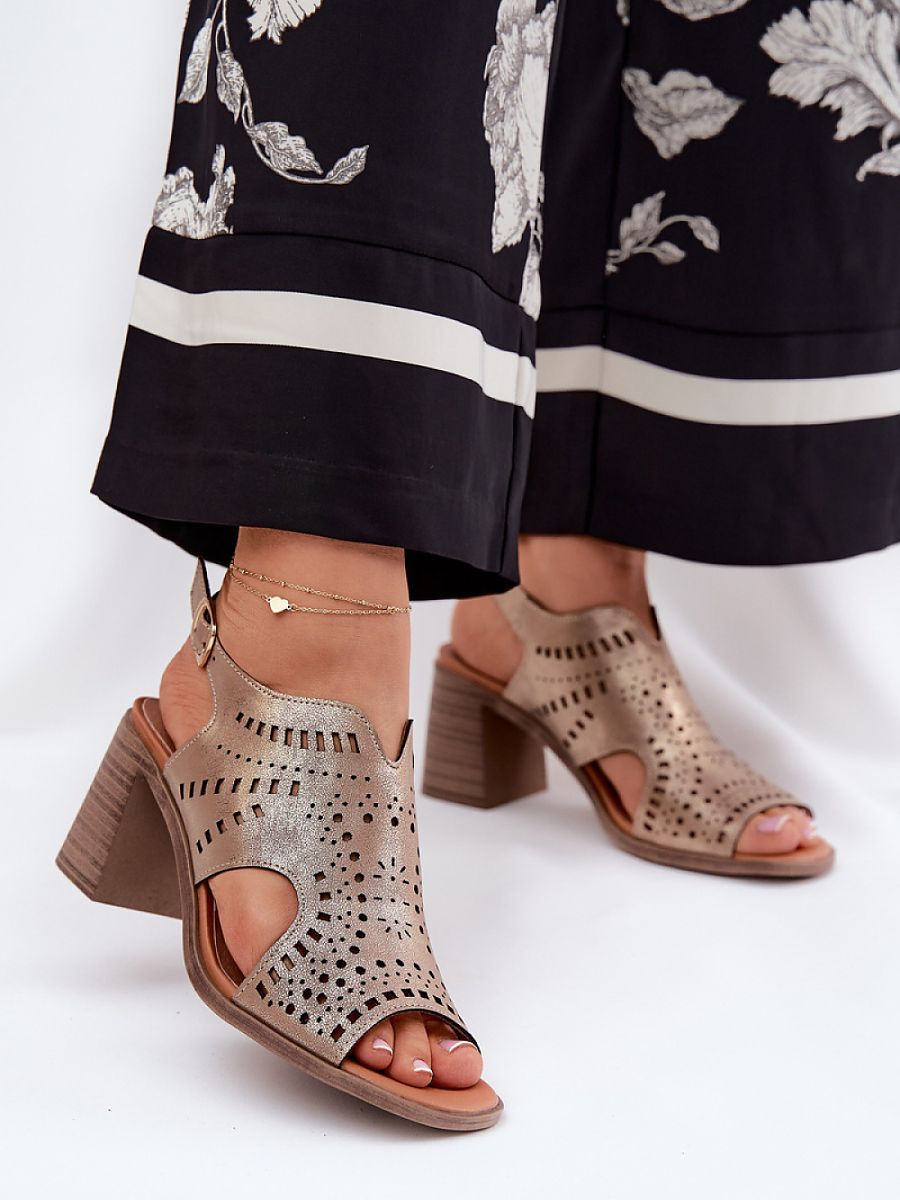 Women’s sandals by Jezzi. Made of high-quality eco leather. This model features a perforated upper. Set on a heel in the form of a column. An adjustable strap with a buckle allows for a perfect fit to the foot. Additionally, a natural leather insole provides extra comfort and a feeling of softness. These stylish sandals will be a perfect complement to summer outfits.