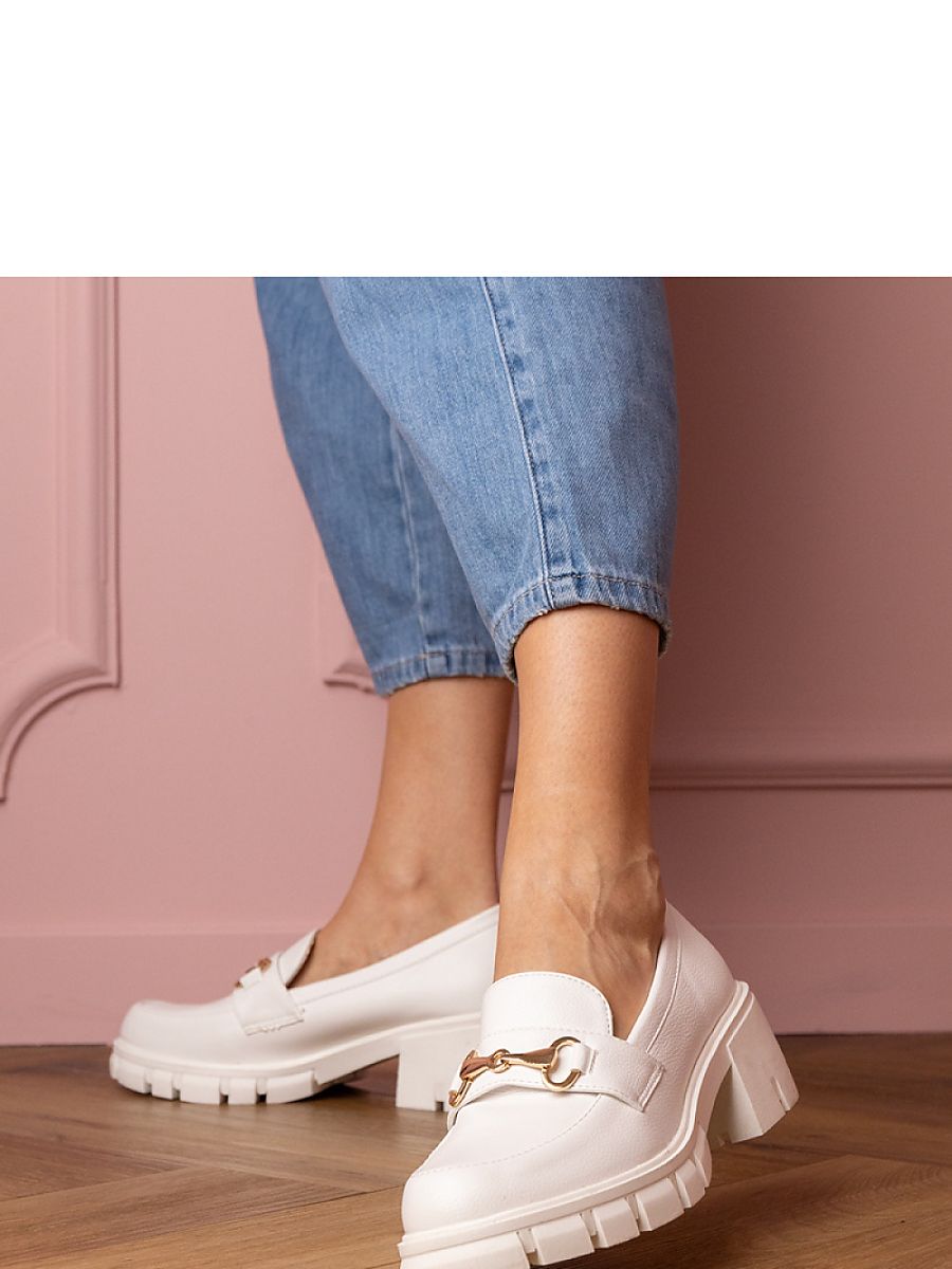 Discover elegance and style with white low heel pumps with a gold embellishment Marela from the Gemre brand. These stylish pumps are the perfect choice for any woman who wants to combine classic with modern design. White pumps are not only a fashionable accessory, but also comfortable everyday footwear.