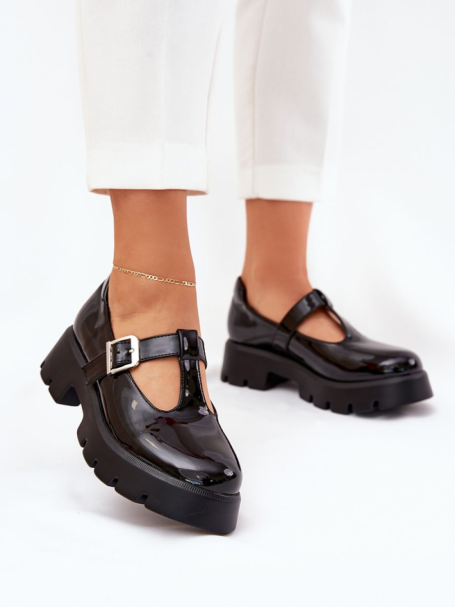 Stylish women’s shoes made of eco leather are a perfect combination of classic and modern look. Set on a flat heel and platform, they provide comfort and stability with every step. The strap with a buckle on the midfoot increases the fit and supports the foot. Perfect for everyday wear, for casual and more elegant stylizations!