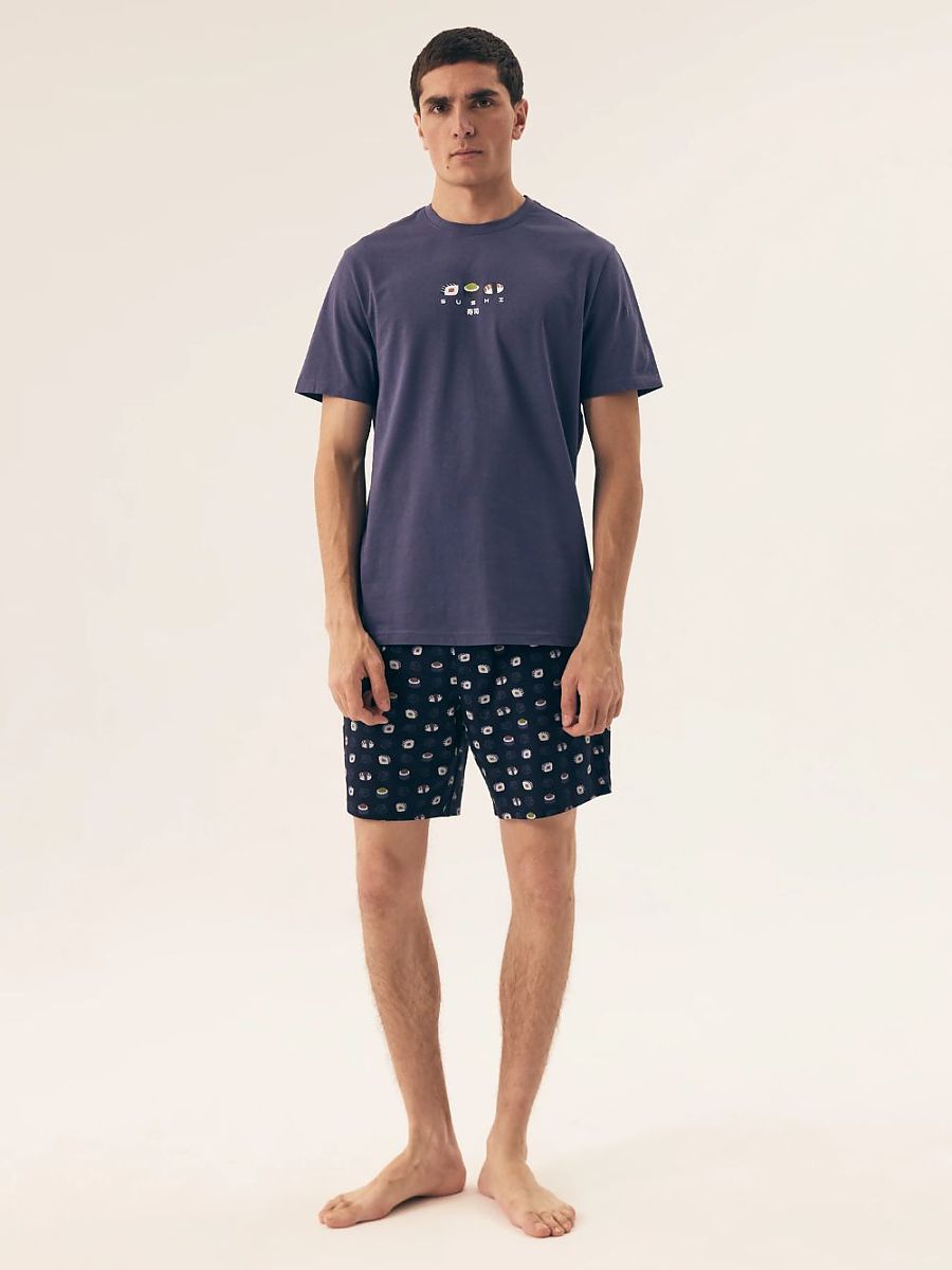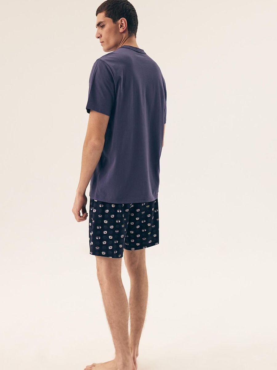 This pajama is the perfect proposal for men who value comfort and convenience during sleep. Made of soft and pleasant to the touch fabric, the pajamas are extremely comfortable and provide a relaxing sleep. The t-shirt with a classic, round neckline is a versatile element that will work in any situation. Short sleeves provide freedom of movement and comfort during sleep. Shorts with a trendy print are the perfect combination of comfort and style. The comfortable cut and elastic material provide full freedom of movement during sleep. Pajamas made of soft and breathable fabric are the perfect choice for warm nights. It allows the skin to breathe and ensures a comfortable sleep. The pajamas are packed in an elegant box, making it an ideal gift for a loved one. It is a perfect gift idea for birthdays, name days, holidays, or any other occasion. This pajama is a must-have in every man’s wardrobe who values comfort and convenience during sleep. Its stylish appearance and practical details make it ideal for many nights.