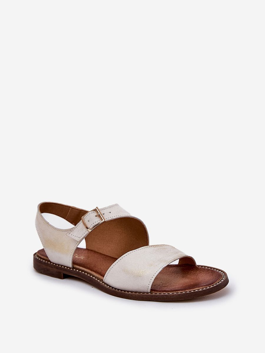 Women’s sandals made of natural leather. They are characterized by a flat heel and a buckle closure on an adjustable strap. The leather insole ensures comfortable wear, making them an excellent choice for hot days. The sole adorned with zircons adds a fashionable character. This model should be in your summer wardrobe!