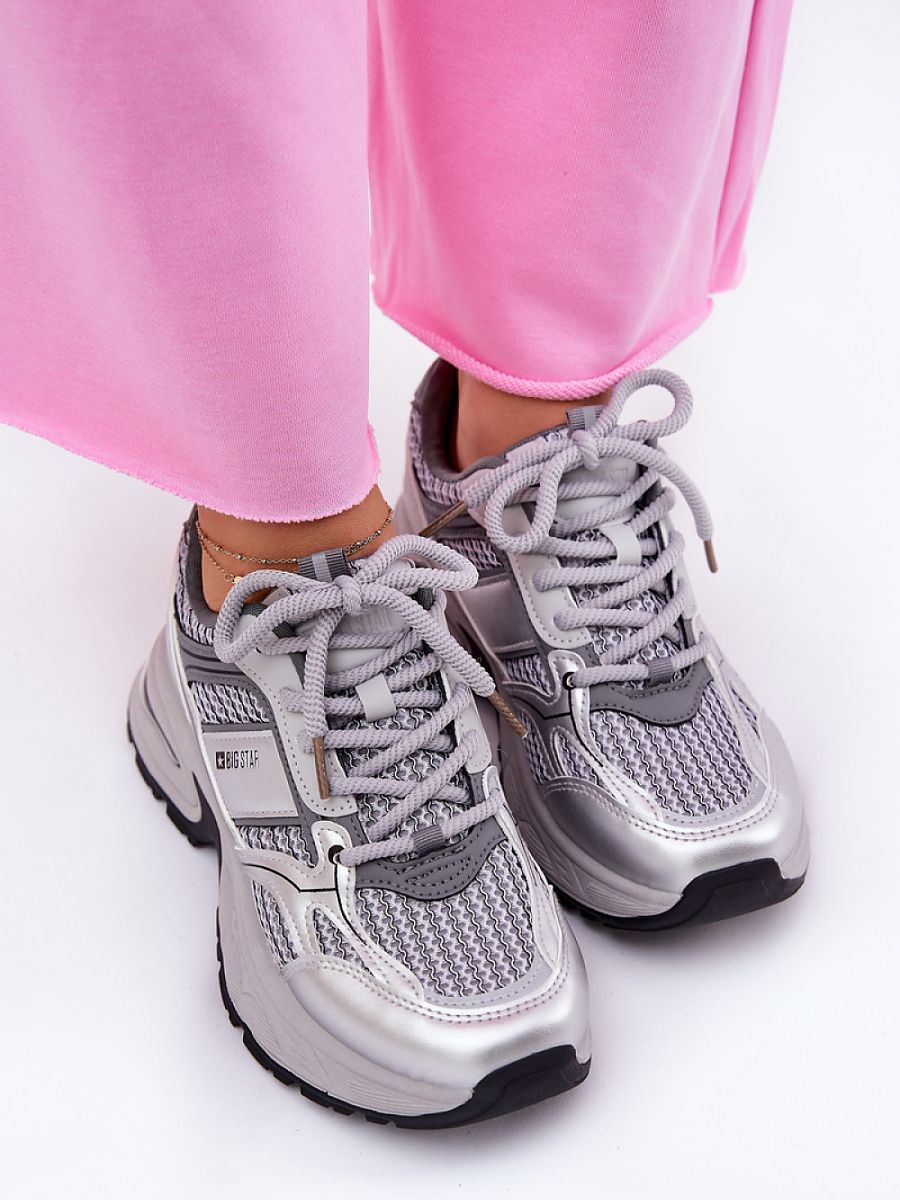 Women’s sneakers from the Big Star brand. Made of a combination of eco-leather and textile material, they are the perfect choice for those who value style and comfort. Set on a chunky sole, they provide stability and comfort all day long. Rounded toes offer freedom of movement, and the soft insole covered with material ensures proper cushioning. These sneakers are an excellent choice for everyday wear!