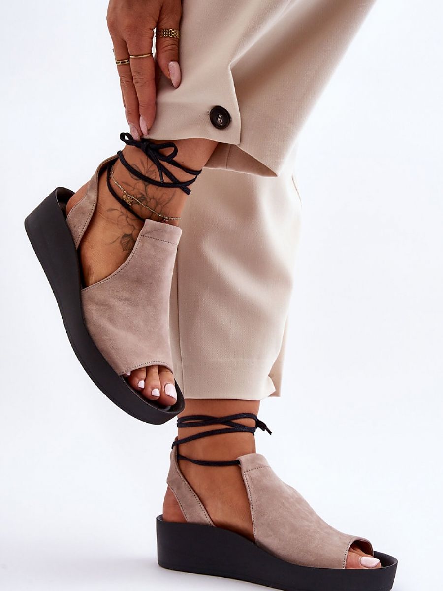 Extremely comfortable and fashionable women’s sandals were made of natural leather. The model is tied, with an upper for the ankle. The sandals have a soft leather insole. The sandals are set on a platform and a low-height anchor. This cut is sure to please you!