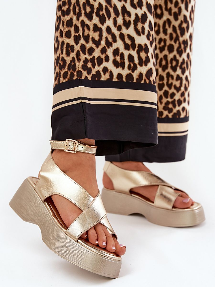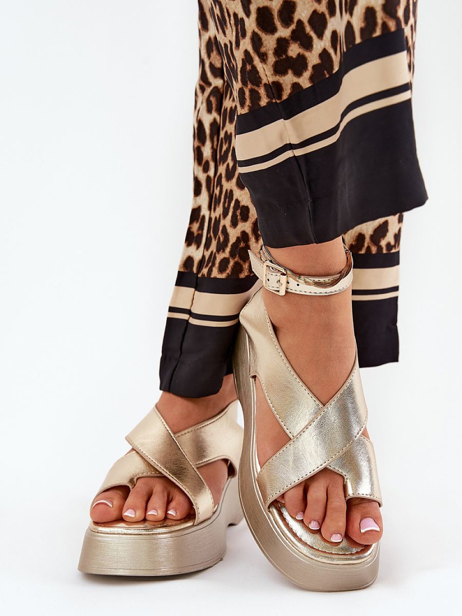 Women’s sandals made of eco leather, set on a platform and delicate wedge heel, combining comfort with a fashionable look. Fastened around the ankle with a buckle and adjustable strap, allowing for a perfect fit. The soft insole provides comfort throughout the day. Perfect for warm days, these sandals pair perfectly with dresses, skirts, and pants, adding a touch of lightness to any outfit.