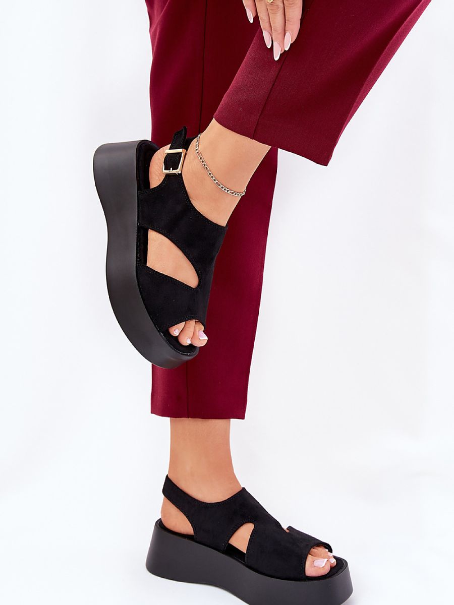 Stylish women’s sandals made of eco-suede. Set on a massive platform that provides comfort and stability. Fastened with a buckle with an adjustable strap, allowing for a perfect fit to the foot. The soft insole ensures comfort all day long. Perfect for summer days, these sandals combine a fashionable look with functionality, matching dresses, skirts, and pants.