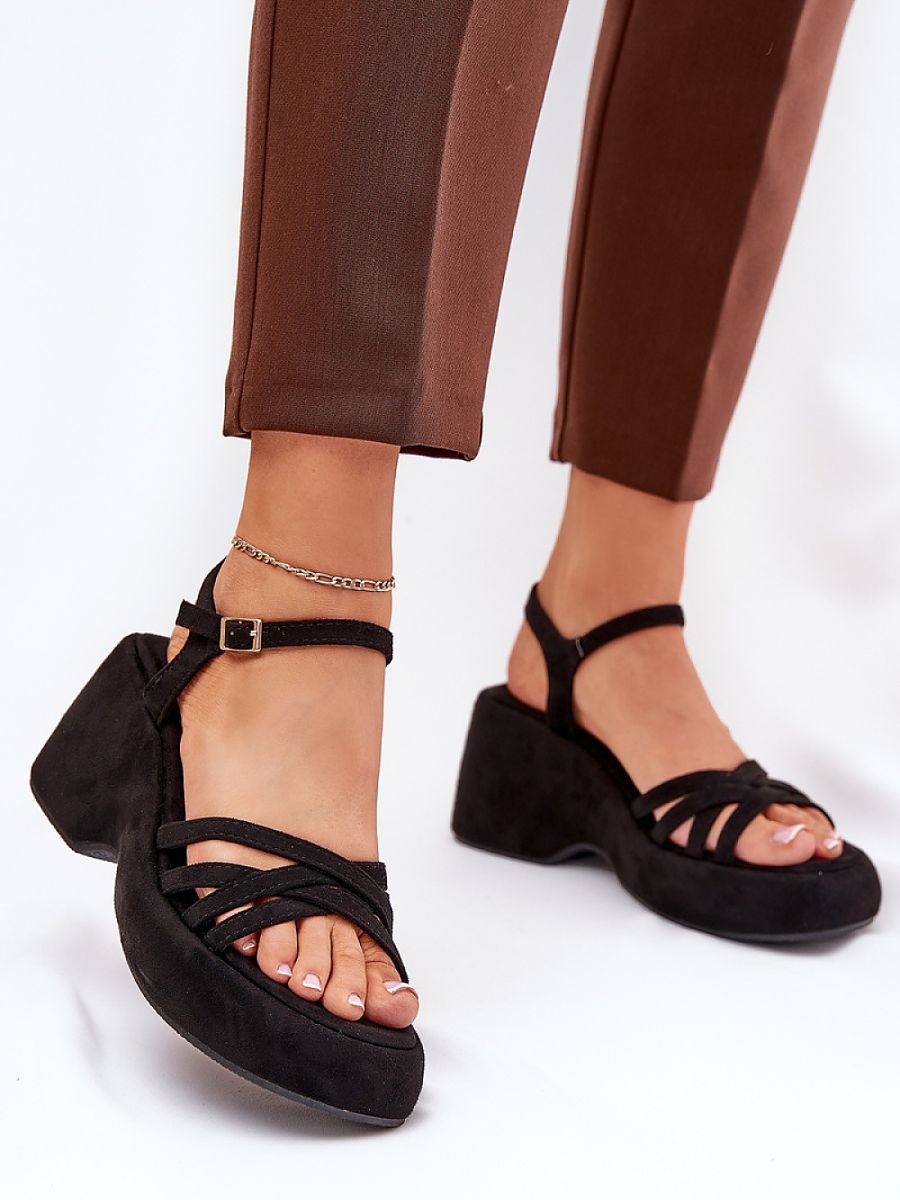 Women’s platform sandals and wedges are not only fashionable footwear, but also a guarantee of comfort throughout the day. Made of a pleasant to the touch eco suede. An adjustable strap with a buckle ensures a proper fit, and a soft insole makes walking in them a pure pleasure, even with prolonged use. An excellent choice for warm days, they will match both casual and more elegant stylings.