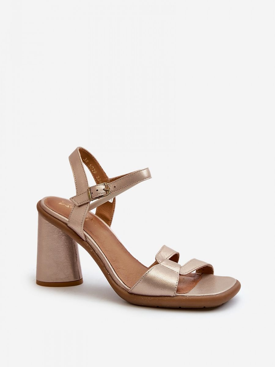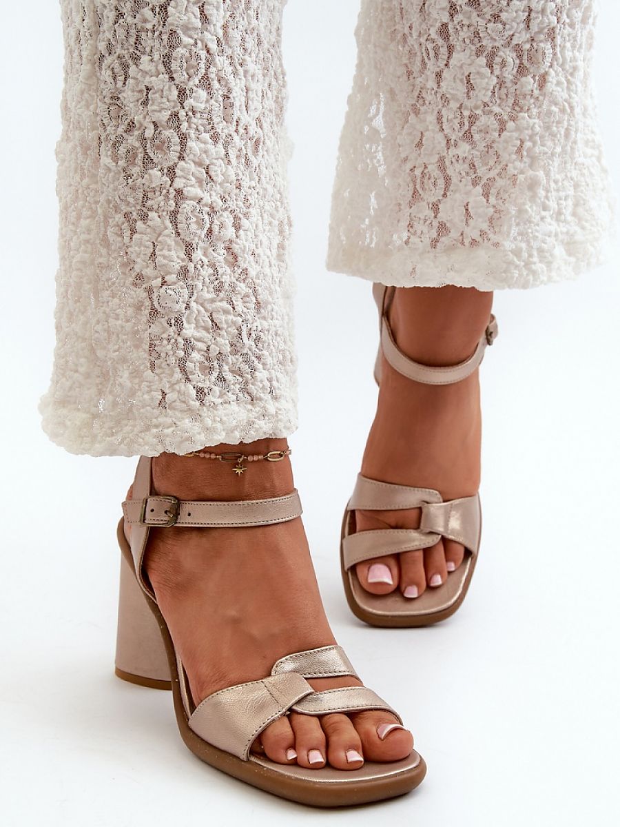 Fashionable women’s sandals were made of natural leather. This model has a soft insole, which is extremely comfortable during use. The sandals are set on a heel in the form of a triangular post. They are fastened with an adjustable strap with a buckle. Perfect footwear for all kinds of celebrations or important meetings on summer days!