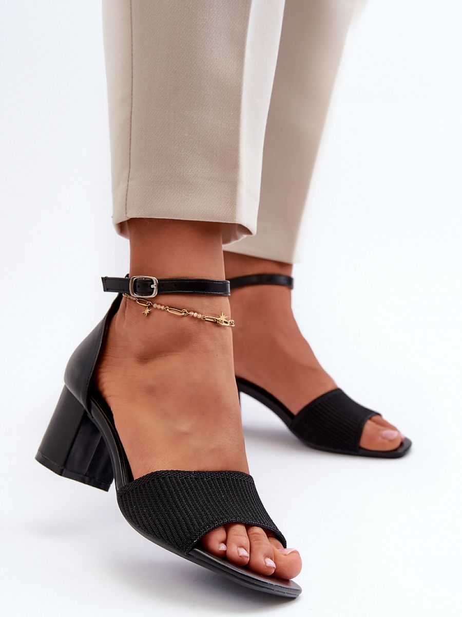 Women’s sandals on a low post. Fastened with an adjustable strap with a buckle. Perfect for any occasion, they combine comfort and elegance, adding chic to any styling.