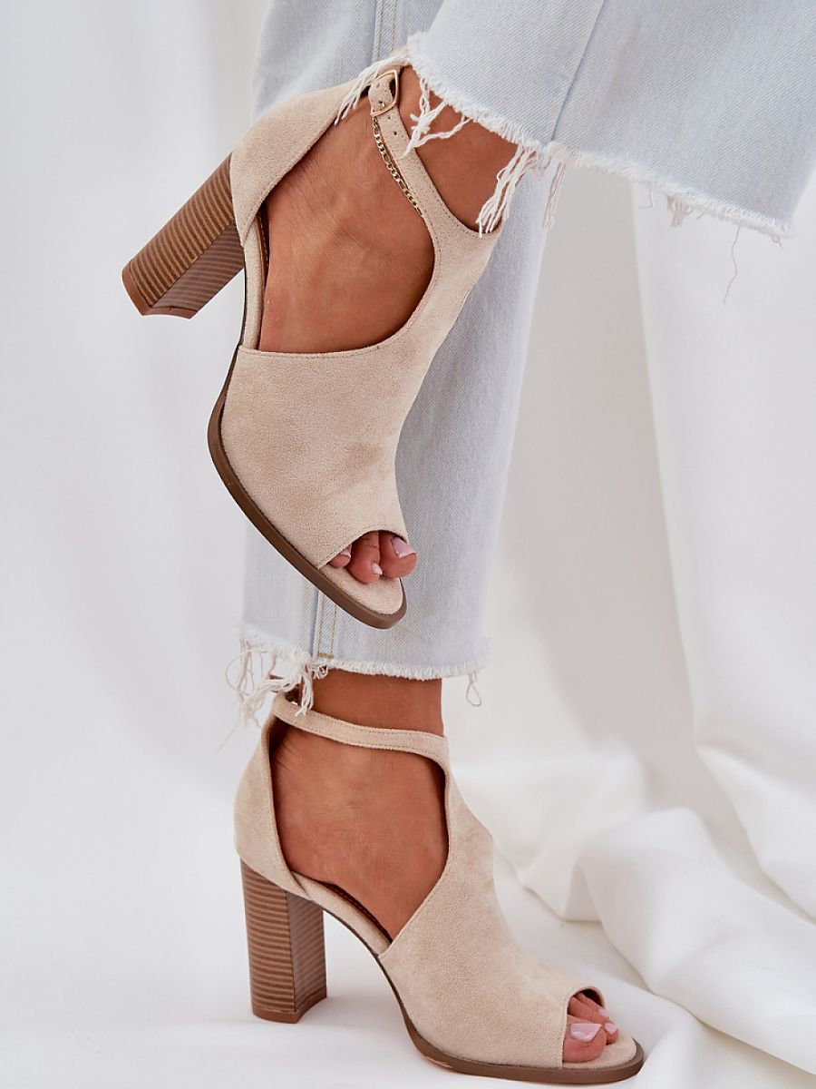 Women27s sandals made of eco suede combine elegance and comfort. Set on a stable heel, they offer all-day comfort. This model features an adjustable strap with a buckle, allowing for a perfect fit to the foot. These sandals are the perfect choice for summer outfits!