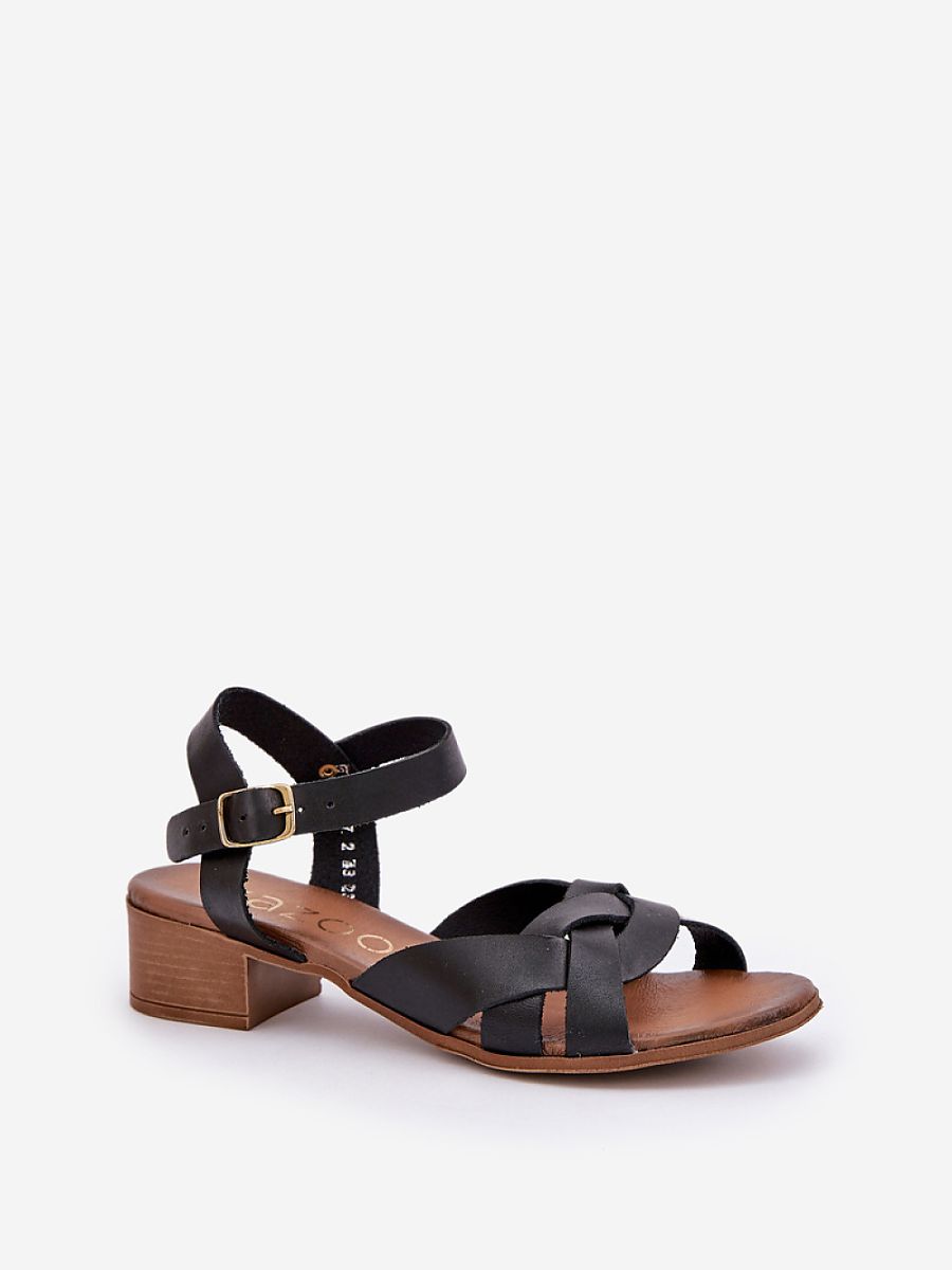 Sandals made of natural leather are an elegant and comfortable option for warm days. Set on a low heel, they provide comfort and stability while walking. Fastened with an adjustable strap, allowing for a perfect fit to the foot. Criss-crossing straps at the front. These sandals are a perfect choice for summer days!
