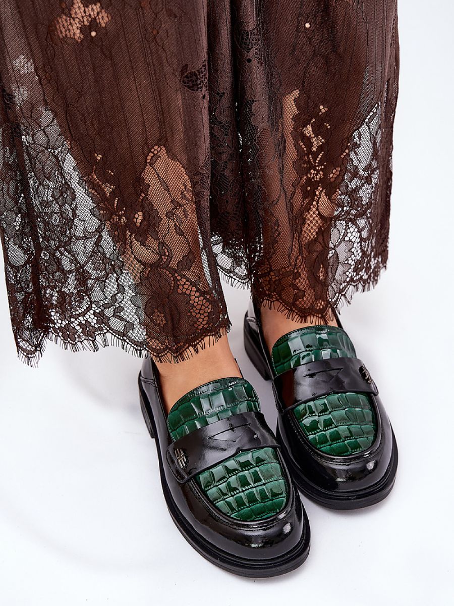 Elegant women’s moccasins from the Vinceza brand, made of patent natural leather. Set on a flat heel, they provide comfort and stability throughout the day. The front of the shoes is decorated with subtle embossing, which gives them a unique character. Rounded toes guarantee comfort, and the leather insole provides proper cushioning. These moccasins will be an ideal choice for both elegant and casual stylings, combining functionality with a fashionable look.