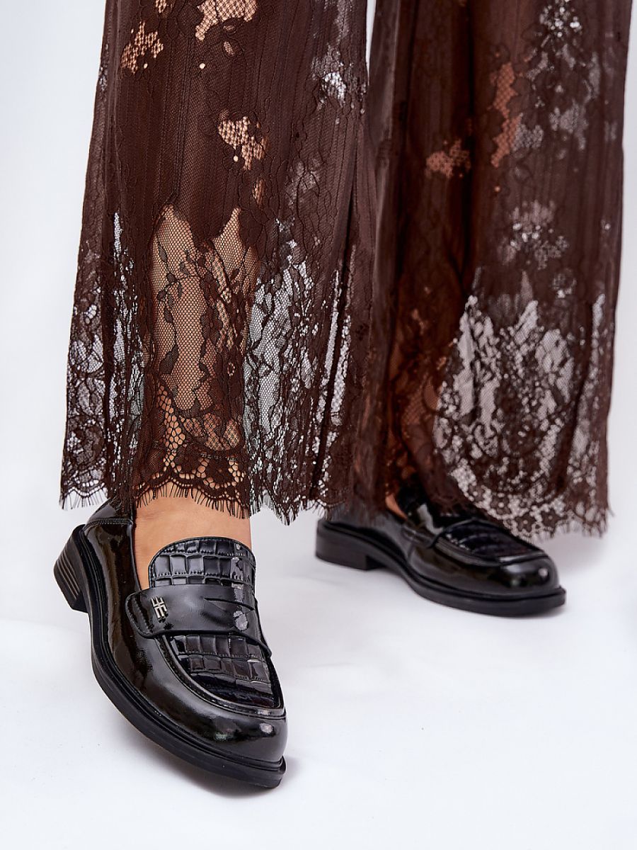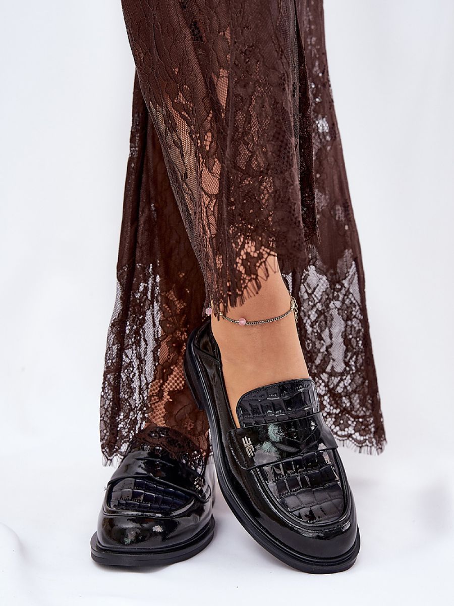 Elegant women’s moccasins from the Vinceza brand, made of patent natural leather. Set on a flat heel, they provide comfort and stability throughout the day. The front of the shoes is decorated with subtle embossing, which adds a unique character to them. Rounded toes guarantee comfort, and the leather insole provides proper cushioning. These moccasins will be an ideal choice for both elegant and casual stylizations, combining functionality with a fashionable look.