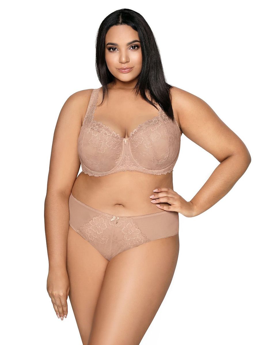 Zjawiskowy biustonosz Carmela Big. Dostępny w dużych rozmiarach. Pięknie podkreśla dekolt, idealnie zbiera biust. Dzięki szerokiemu, ozdobnemu ramiączku pozwala ukryć asymetrie piersi. Miseczki wykonane z finezyjnej czerwonej koronki, która otula seksownie piersi i delikatnie pnie się po ramiączku. Zgrabne miseczki osadzone na koronkowym bawecie oraz koronkowych plecach, które zostały wzmocnione siatką elastyczną. Ramiączka regulowane, nieodpinane. Haftka dwurzędowa i trójstopniowa z trójstopniową regulacja.