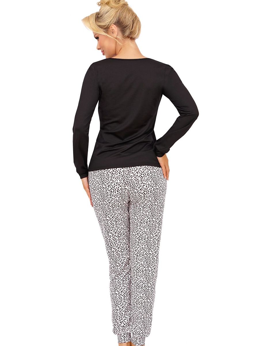 Women’s pajamas with an exceptionally comfortable cut, ideal both for sleeping and for wearing at home as homewear. The blouse has long sleeves finished with a ribbed hem and a V-shaped neckline, which gives it an elegant character. The blouse is also finished with a ribbed hem, and decorated with an inscription on the front, which enhances its stylish look. The pants are long, decorated with a subtle print, and without pockets, which ensures lightness and comfort. An elastic waistband is placed at the waist, and a decorative bow adds a charming touch. The product is made in Poland, guaranteeing high quality and comfort.