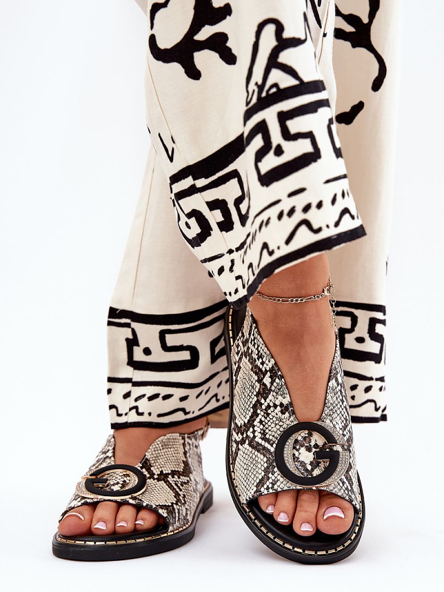 Flat women’s sandals are an excellent choice for summer days. They feature a decorative element at the front that adds a touch of subtle charm, and an adjustable strap with a buckle allows for a perfect fit to the foot. The eco-leather insole ensures comfort throughout the day. These sandals combine style with functionality, making them a perfect complement to both everyday and more elegant outfits.