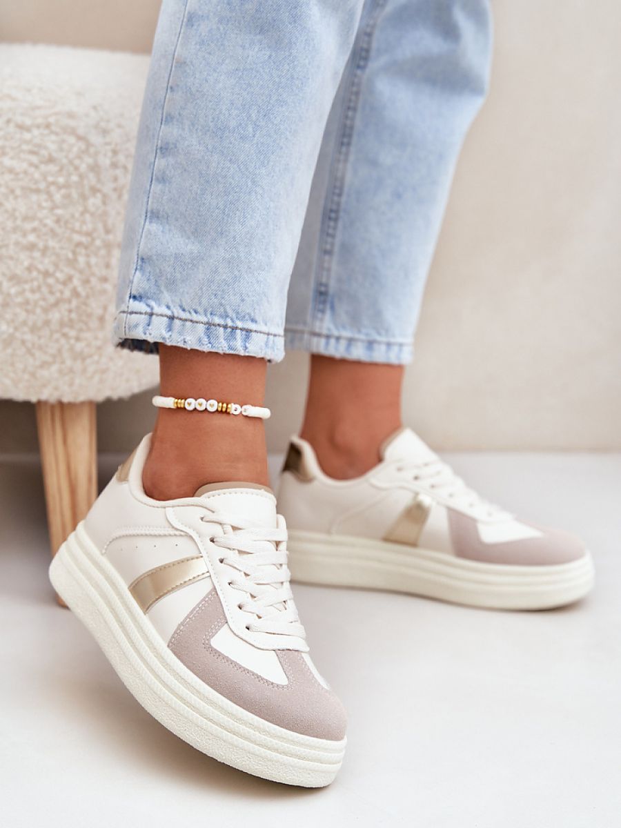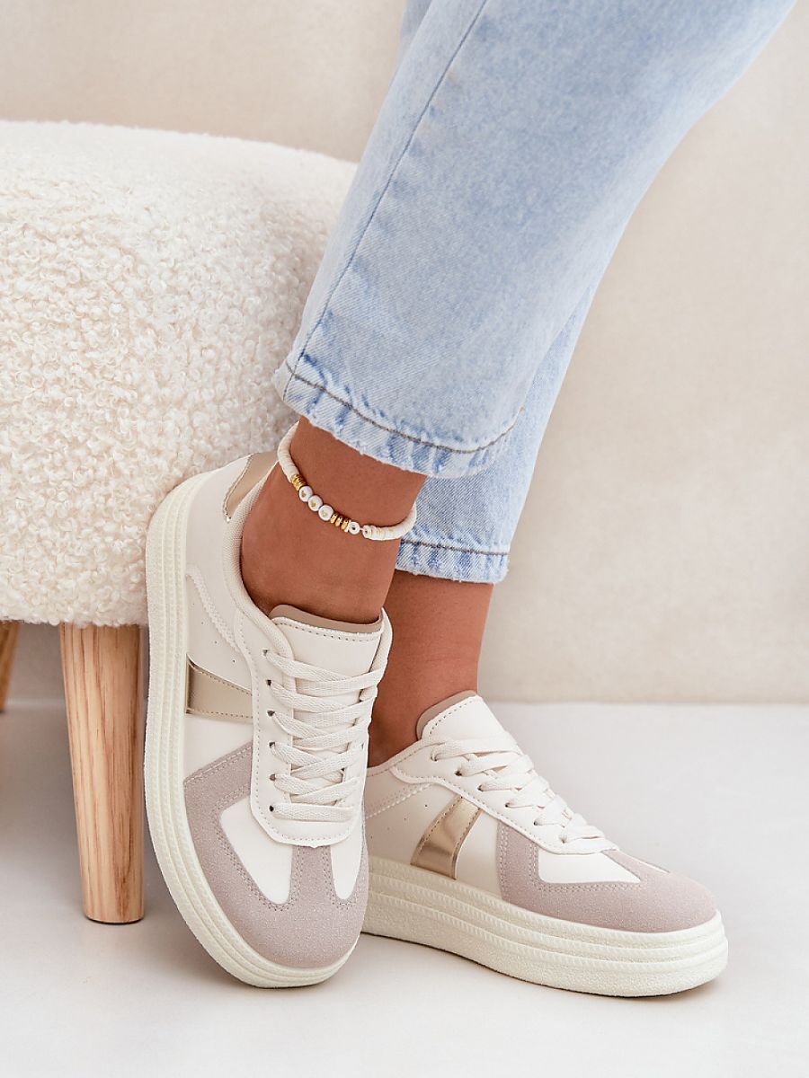Women’s sneakers made of eco leather are a combination of modern style and comfort. Thanks to the soft, foam insole covered with material, they provide comfort for wearing all day long. Rounded toes add lightness, and the platform emphasizes their fashionable character. Perfect for everyday stylizations, they are an excellent choice for any occasion.
