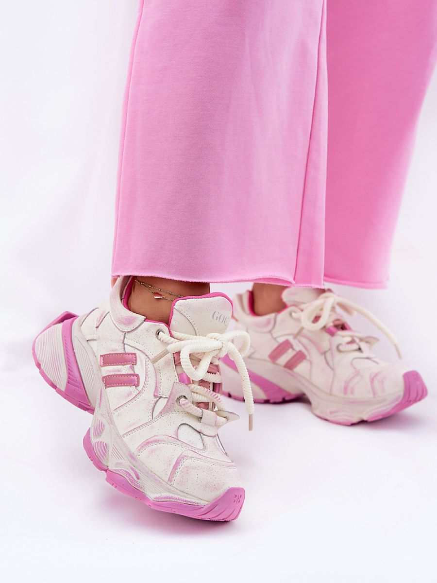 Stylish women’s sneakers from the GOE brand, made of high-quality leather, are a perfect combination of comfort and fashionable look. The upper adorned with sequins adds a unique shine to the shoes, attracting attention. The chunky sole provides stability and comfort, while the thick lacing gives them a bold character. These sneakers are an ideal choice for everyday styling that combines elegance with a touch of distinctive style.