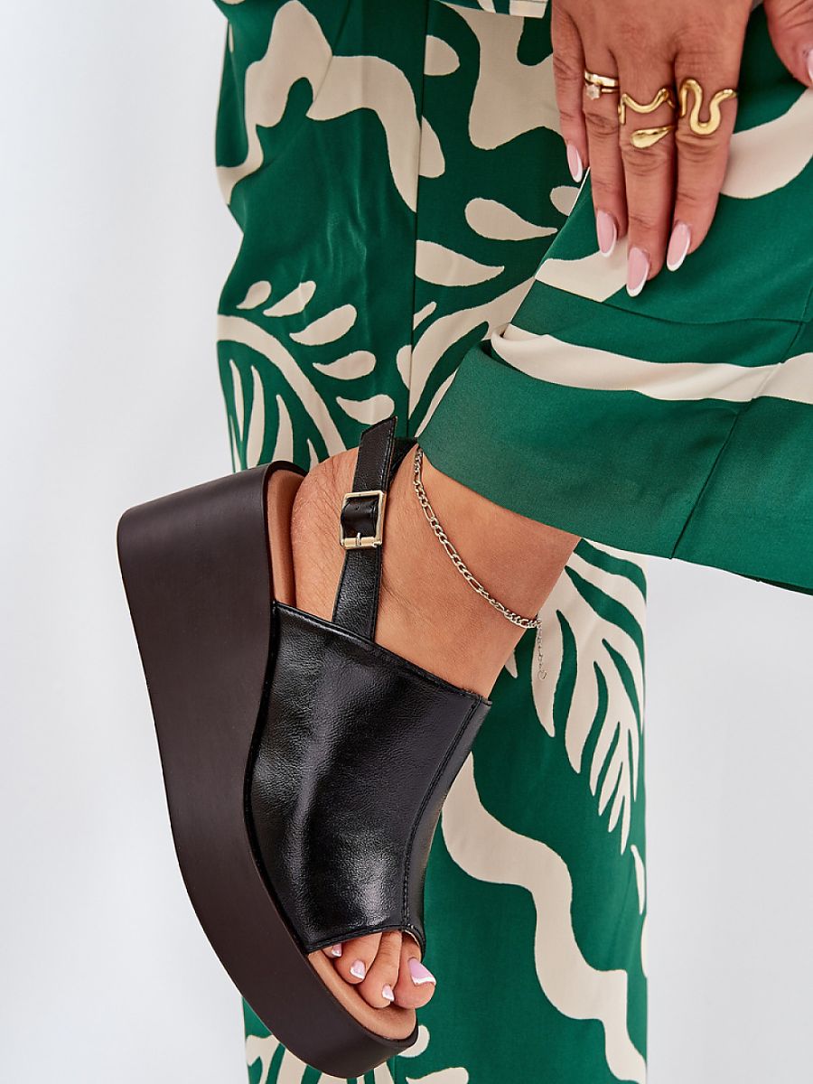 Women’s sandals from the Jezzi brand made of eco leather. The platform and wedge give them a modern style, as well as comfort of use. This model has a soft insole and a closure with an adjustable buckle, which provides additional comfort. Perfect for various occasions, from formal events to everyday outings, these sandals will become an indispensable element of your wardrobe.