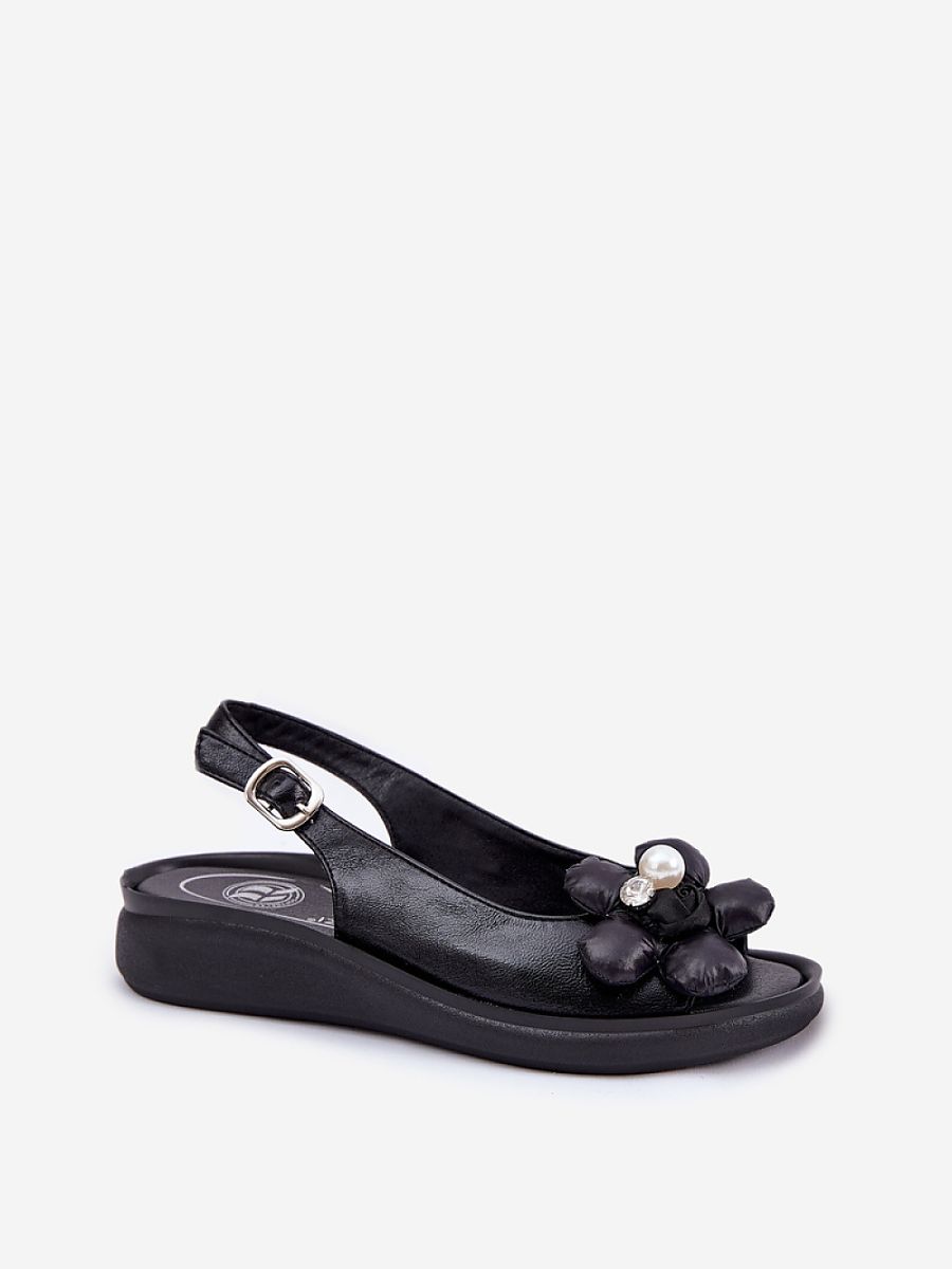 Women’s sandals by Jezzi brand. Made of high-quality eco leather. Set on a delicate wedge, they provide stability and comfort when worn. This model is distinguished by a material, decorative flower that adds a unique charm. Fastened with an adjustable buckle strap, they guarantee a perfect fit to the foot. This elegant style will perfectly complement many outfits with dresses and pants. You definitely should have them!