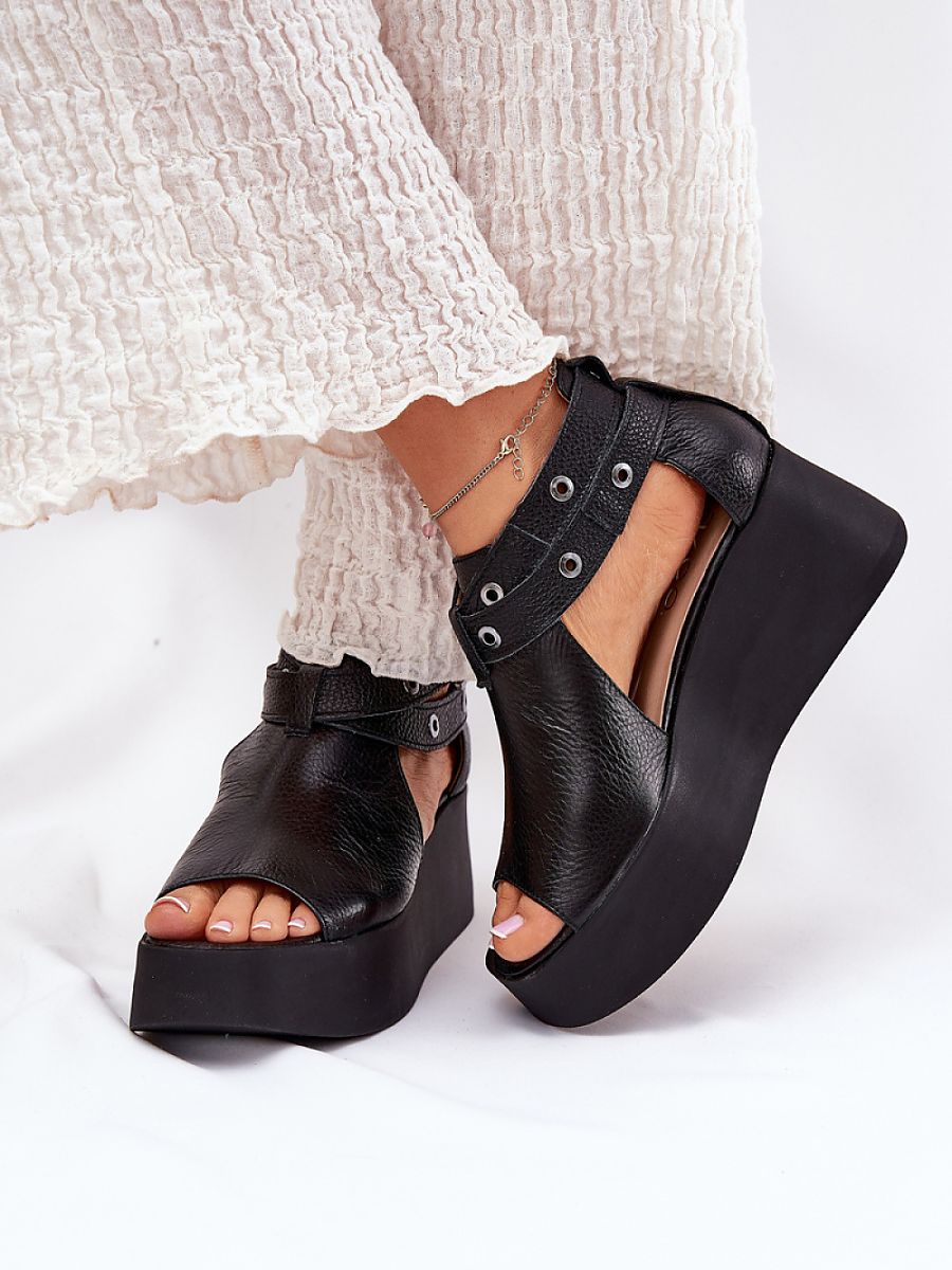 Sandals made of natural leather are not only stylish, but also durable and comfortable. The unique design adds charm to every summer outfit, emphasizing individual style. The wedge heel along with the platform provide extra height. Perfect for women who value fashion and comfort in one!