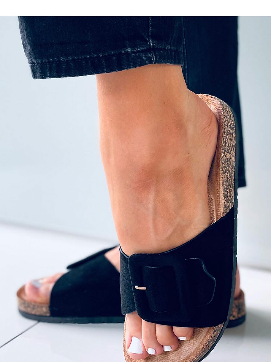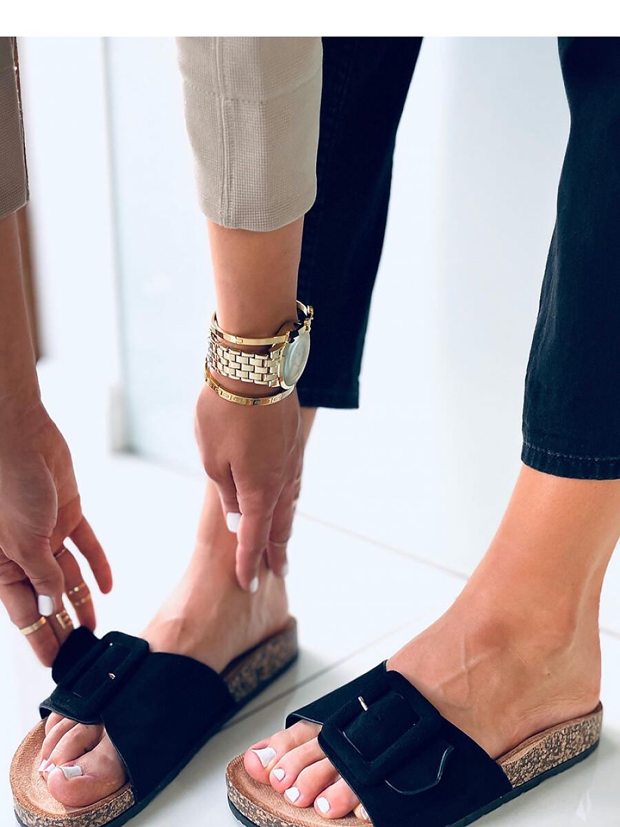 Women’s suede flip-flops with a cork sole. They have a wide strap with an adjustable buckle for a perfect fit on the foot. These incredibly comfortable model with a profiled inner insole. You will surely fall in love with them from the first time you put them on! External material ? ecological suede.