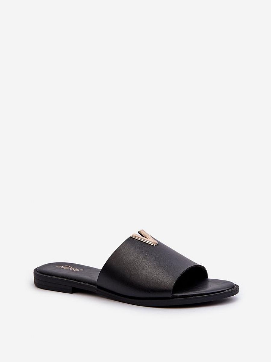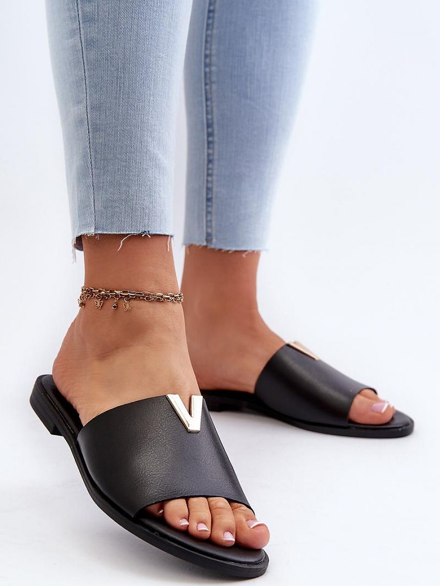 Women’s flip-flops made of ecological leather. The gold element will add glamour to your summer styling. Set on a flat heel. This model will be a perfect choice for many occasions!