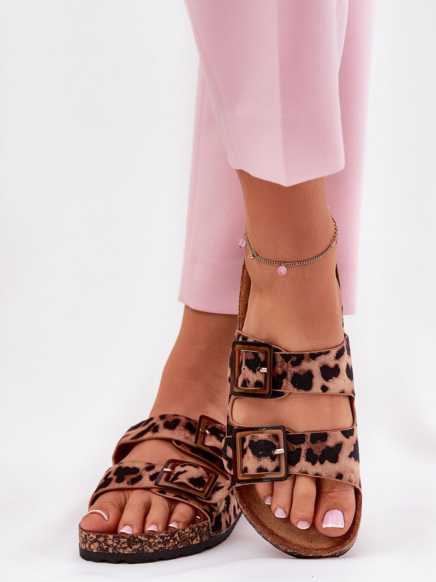 Classic women’s sandals made of eco suede, set on a cork sole, which combine comfort with a fashionable look. In the front, there are two straps with buckles that ensure a proper fit. The eco suede profiled insole guarantees comfort throughout the day. Perfect for quick outings, shopping or walks, these sandals will be indispensable in everyday styling.