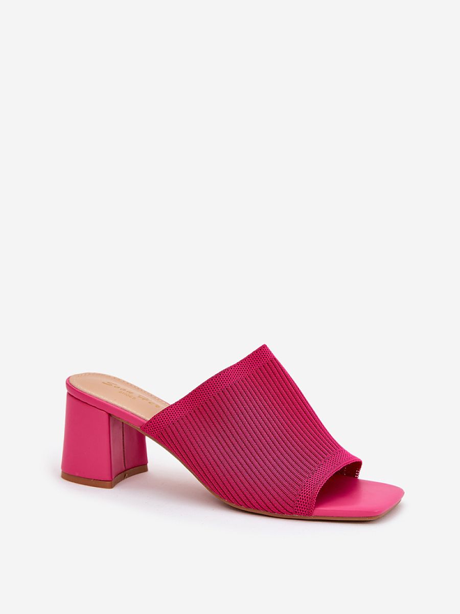 Women’s slippers made of textile material. Set on a column heel. Thanks to the soft insole, they will be a perfect choice for summer walks or various festivities. Their fashionable look makes them blend well with various stylizations. You definitely should have them in your summer wardrobe!