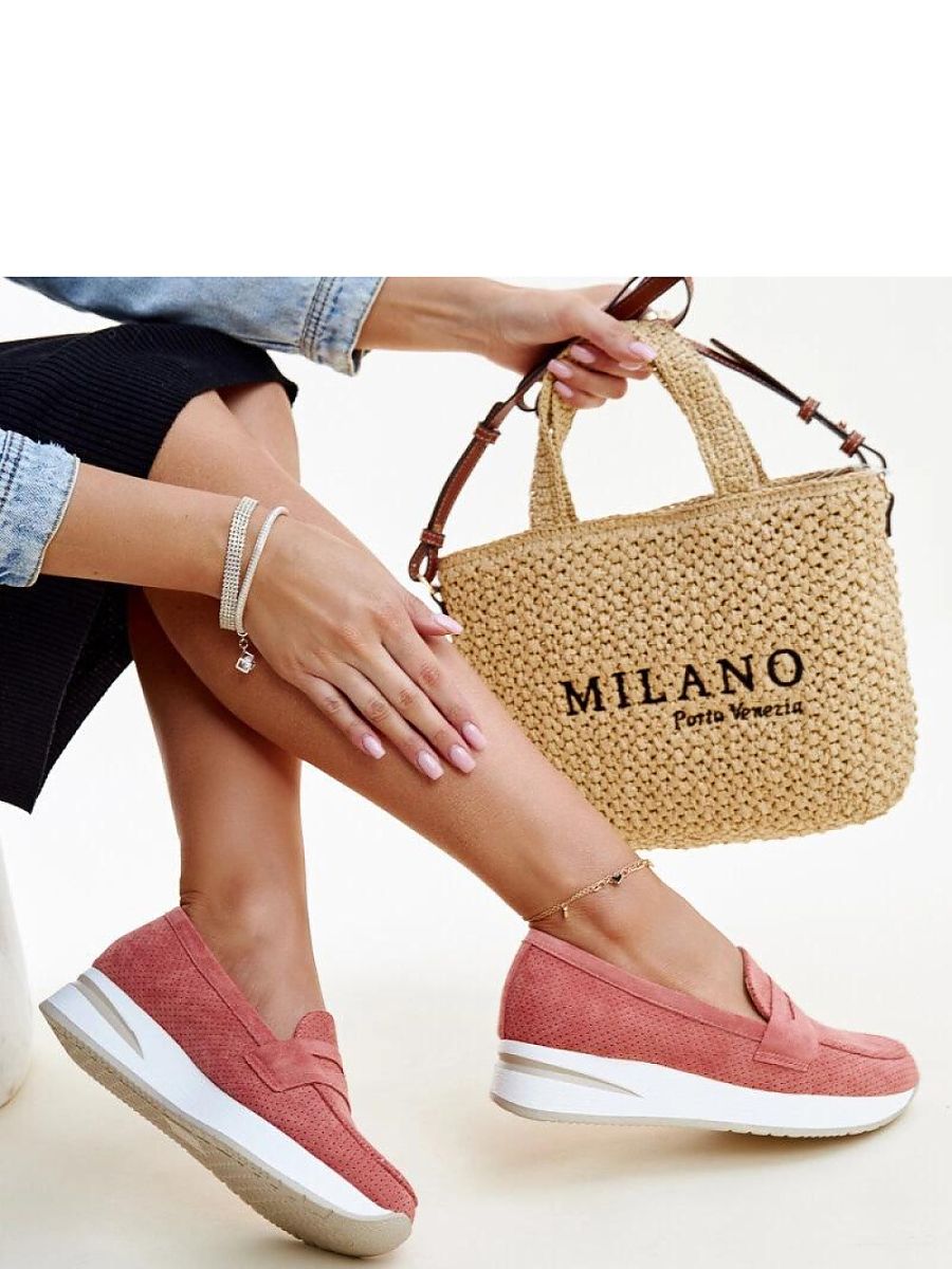 Pink Muna loafers are the perfect choice for summer. Their perforated design and black color make them a hit among summer footwear. Made of high-quality rubber, they not only look elegant but are also very comfortable. The low design and rounded toe make them perfect for hot days. Additionally, due to their slip-on construction, they are easy to put on and take off. These modern shoes will add style to any outfit, making you feel fashionable and comfortable throughout the season. Outer material: Eco leather, Lining: None, Sole material: Rubber, Sole color: Beige, Closure: Slip-on, Collection: Summer.