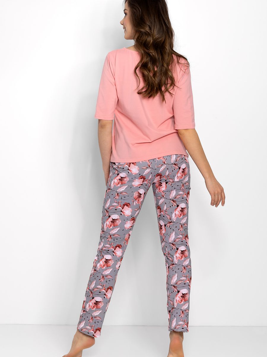 Women’s pajamas are a stylish and comfortable 2-piece set, ideal not only for sleeping, but also as homewear. Made of natural, hypoallergenic materials, it provides comfort and breathability, making it an excellent choice for any season. The upper part of the pajamas is a blouse with 3/4 sleeves and a U-shaped neckline, maintained in soft, subtle colors. The long pants accentuate the silhouette, while the elastic waistband ensures a perfect fit. The patterned knit fabric and high quality print of the material add elegance to the pajamas. It is OEKO-TEX Standard 100 certified, which guarantees safety for the skin. Entirely designed and sewn in Poland, with attention to the highest quality and neat cut.