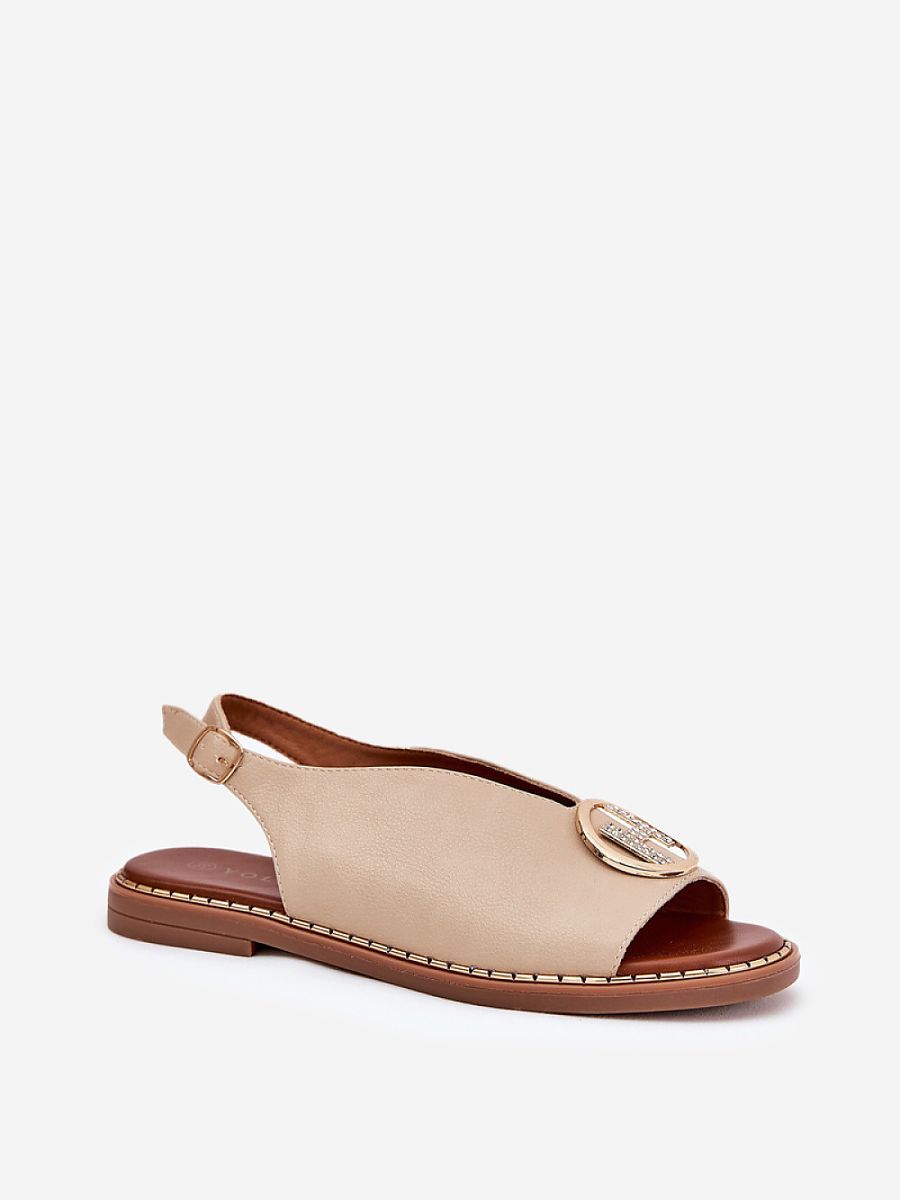 Eco-leather sandals are an elegant option for summer days. Mounted on a flat heel, they provide comfort and stability. At the front, there is an embellishment that adds a subtle charm. Fastened with an adjustable strap with a buckle, they allow for a perfect fit to the foot. These sandals will be an excellent choice for elegant styles, combining trendy appearance with comfort.