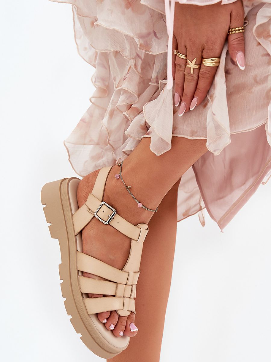 Women’s sandals made of eco leather. Set on a platform, they combine comfort with a fashionable look. Fastened with an adjustable buckle strap, which allows for a perfect fit to the foot. At the front there are straps, and the soft insole provides comfort throughout the day. The classic cut makes these sandals a perfect choice for many summer stylizations.