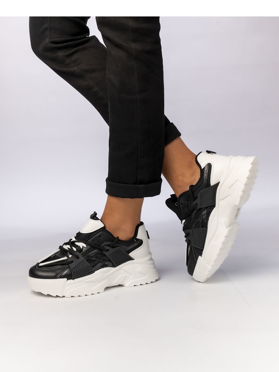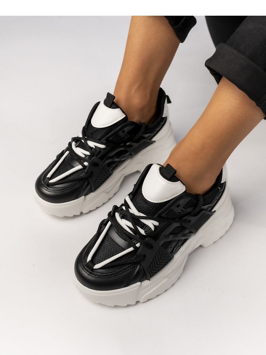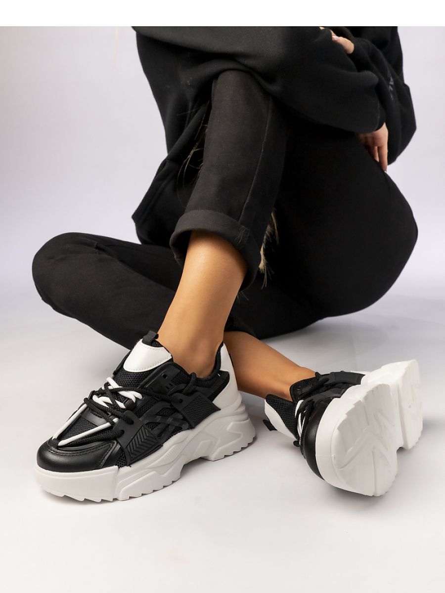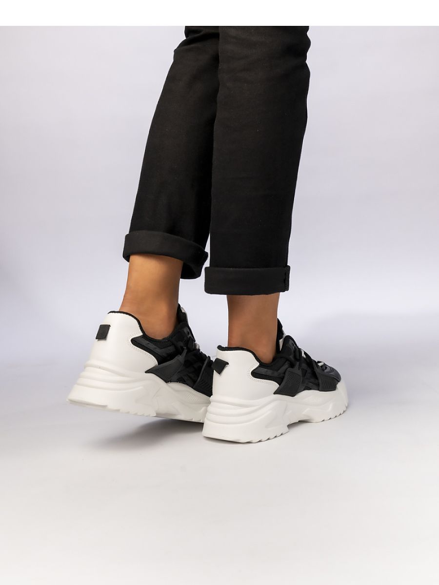 VEXA BLACK is bold sneakers with a unique design that will make you stand out from the crowd. The black upper with white contrast laces and sole elements gives them a modern and sporty character. The model has a dynamic shape and a massive, yet lightweight platform that guarantees maximum comfort and cushioning. Perfect for both sporty styling and a casual everyday look.