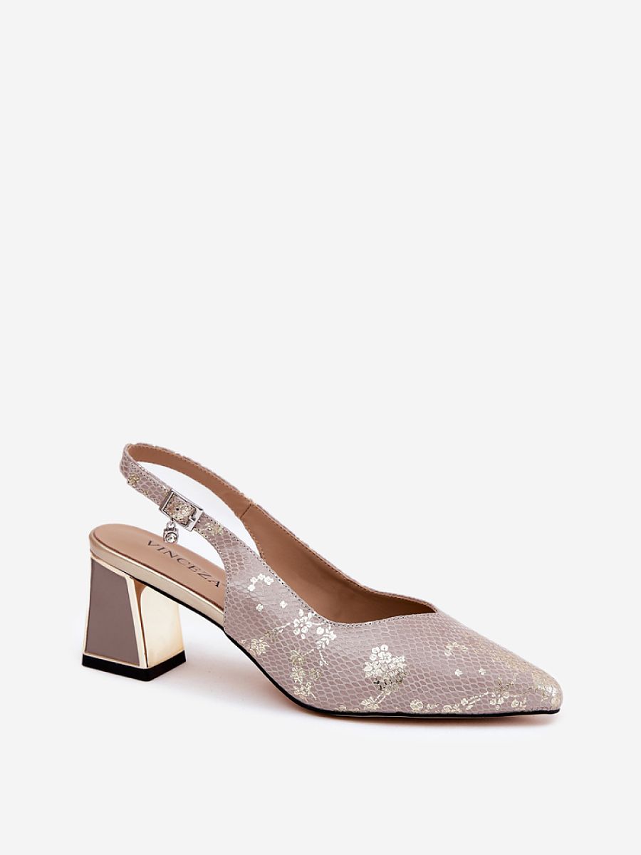 Women’s sandals from the Vinceza brand. Made of natural leather. The pointed toes give them a slim look, and the patterned upper adds a unique character. Fastened with a buckle and adjustable strap, they provide a perfect fit to the foot, ensuring comfort throughout the day. These sandals will be a perfect choice for summer days, perfectly matching with dresses, skirts or pants, adding lightness and elegance to any outfit.
