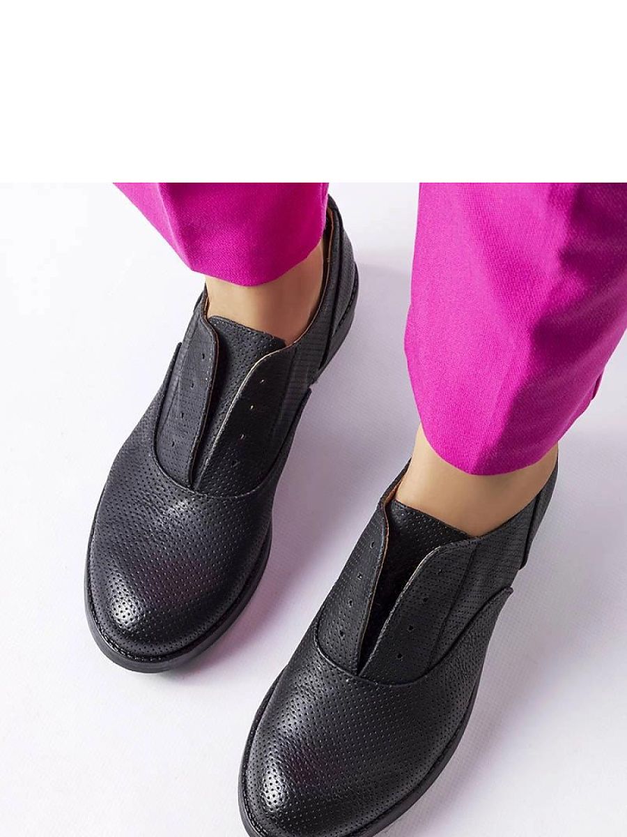 Black perforated Kairaouani shoes are the perfect choice for women who value comfort and style. Flat-heeled shoes with a low upper are made of airy eco-leather, making them light and breathable. The lace-up model with round toes and an eco-leather insole ensures comfortable wear. The shoes look best on narrow feet and go perfectly with elegant outfits. Perfect for suit pants, shirts, and evening dresses. Standard sizing, so it’s worth choosing your size. The black plastic sole, slip-on closure makes it easy to put on the shoes. Perfect for summer days when you want to feel comfortable and stylish at the same time.
