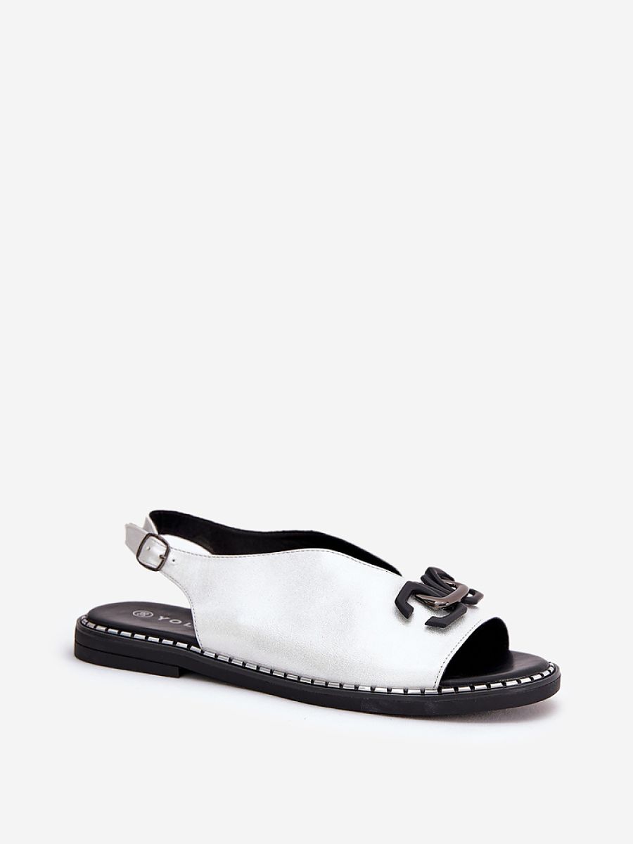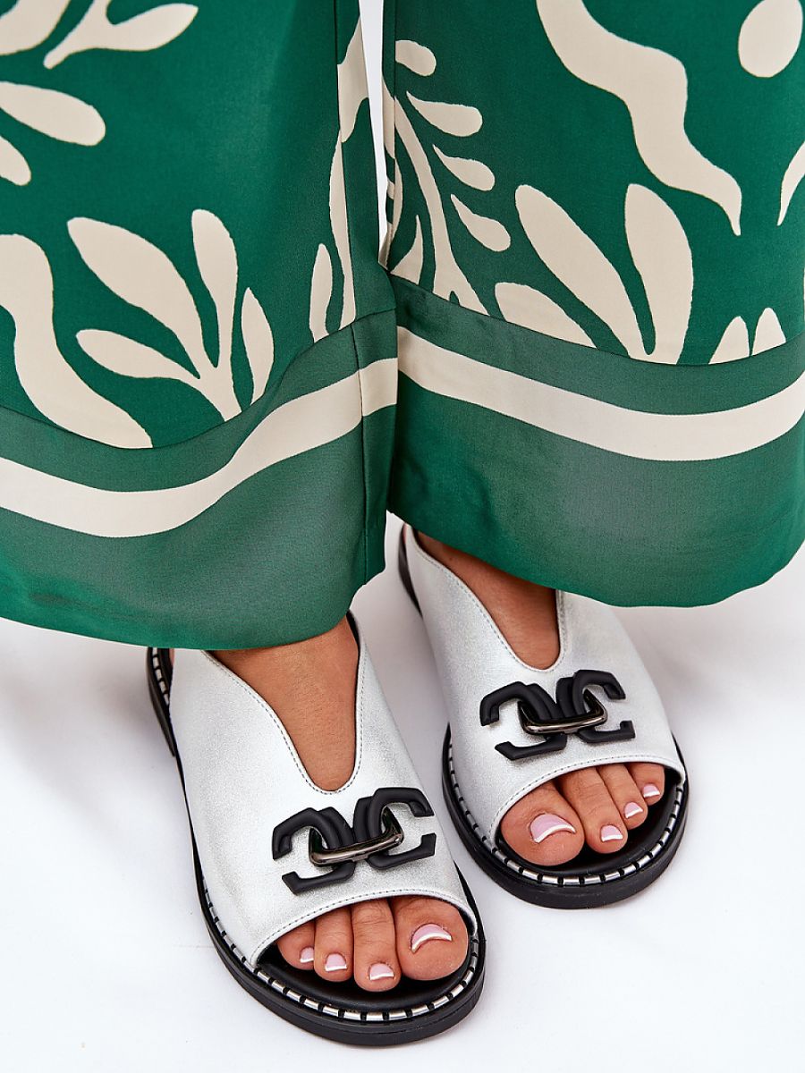 Elegant eco leather sandals are a perfect choice for summer days, combining style and comfort. There is a decoration at the front of the shoes that adds a unique charm to them. Set on a flat heel, they provide comfort throughout the day. Fastened with an adjustable buckle strap, they allow for a perfect fit. These sandals will be a perfect complement to dresses, skirts, and fabric pants, creating an elegant and fashionable look.
