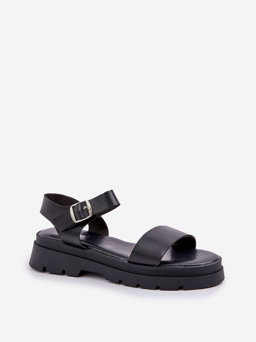 Comfortable women’s sandals have been designed with a flat heel and platform. Made of eco-friendly leather, they feature a wide strap that stabilizes the foot, preventing it from sliding. Thanks to the soft insole, this footwear guarantees comfort even during all-day wear! The model is fastened around the ankle with an adjustable strap and buckle. This is an excellent choice for warm summer days.