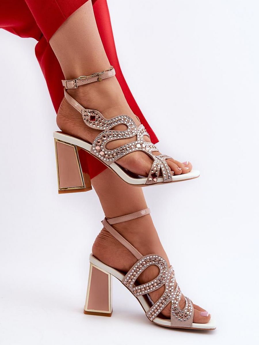 Elegant women’s sandals with embellishments. Set on a block heel. Fastened with an adjustable buckle strap. A soft leather insole ensures comfort during wear. This model will definitely add a touch of shine to your outfit!