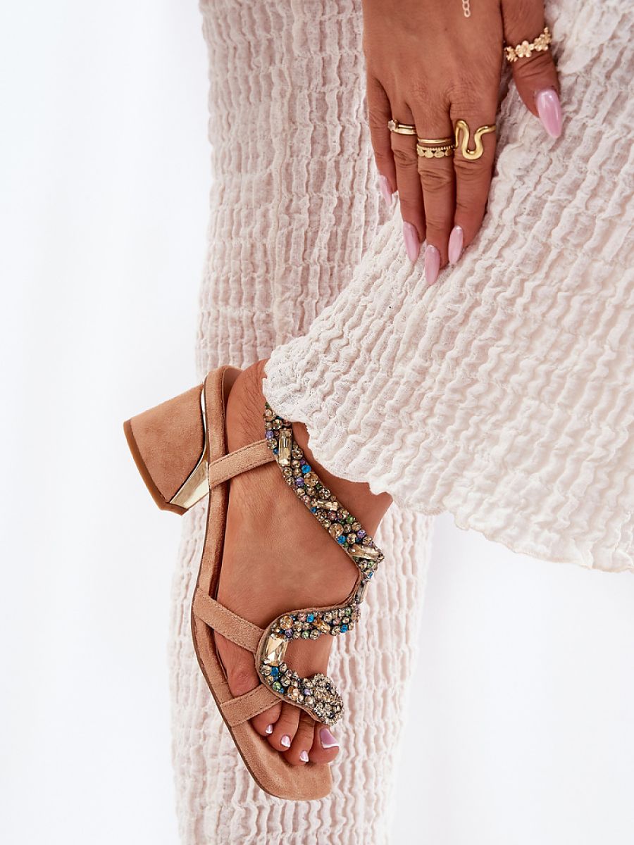 Elegant women’s sandals made of eco-suede are a unique choice for special occasions. Set on a stiletto heel with a mirrored element. The model stands out with an impressive decoration of crystals that create a unique snake pattern, attracting attention and giving it a special character. Perfect for evening outings, these sandals will be a perfect complement to styling for various celebrations, combining fashionable design with elegant finishing.