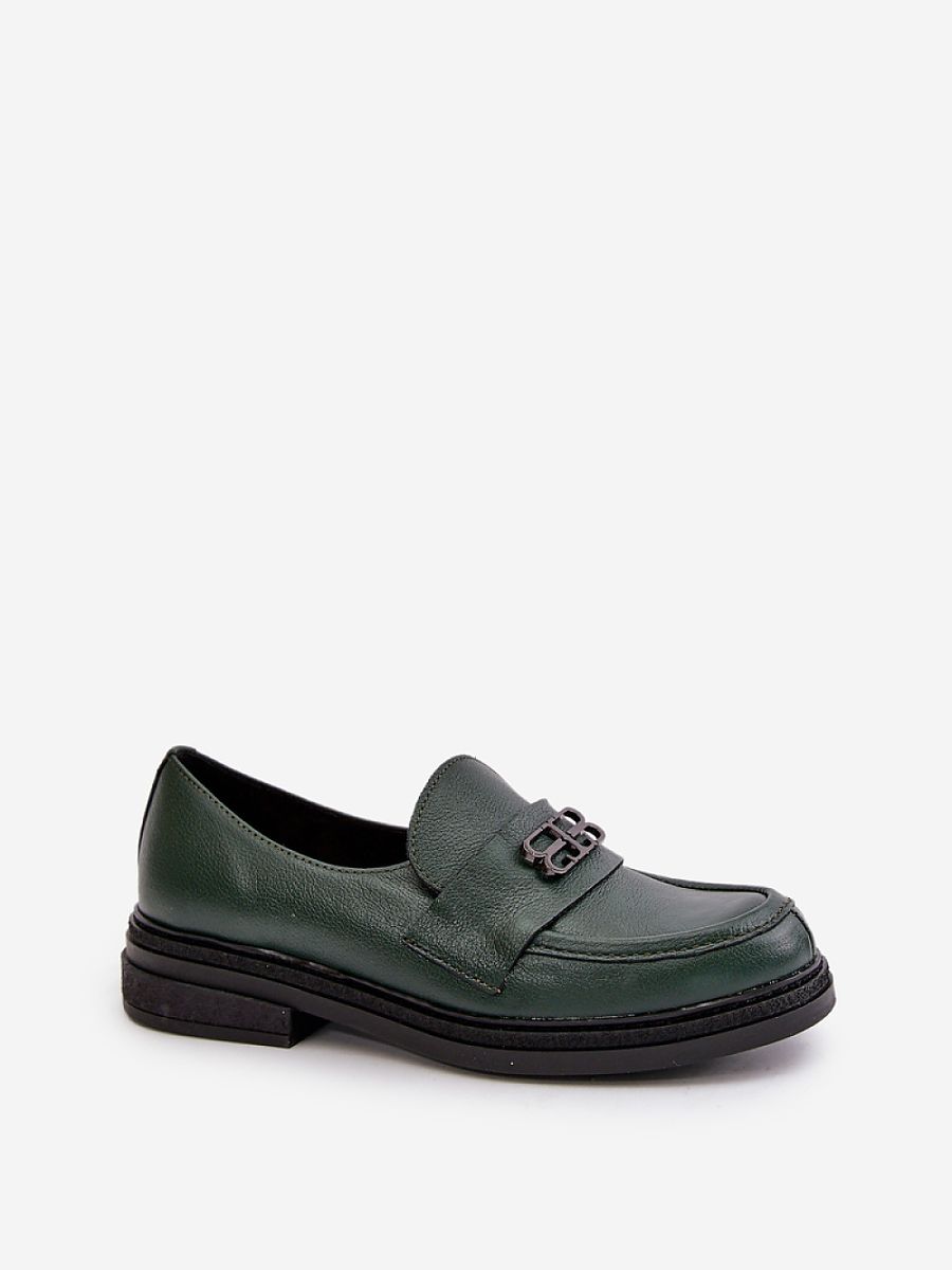 Elegant women’s leather shoes are a combination of style and comfort. Set on a flat heel. Rounded toes add subtlety. A strap with a small decoration is a delicate, decorative accent. Additionally, this model has a reinforced heel, which provides stability and support for the foot. Perfect for everyday and more formal stylizations.
