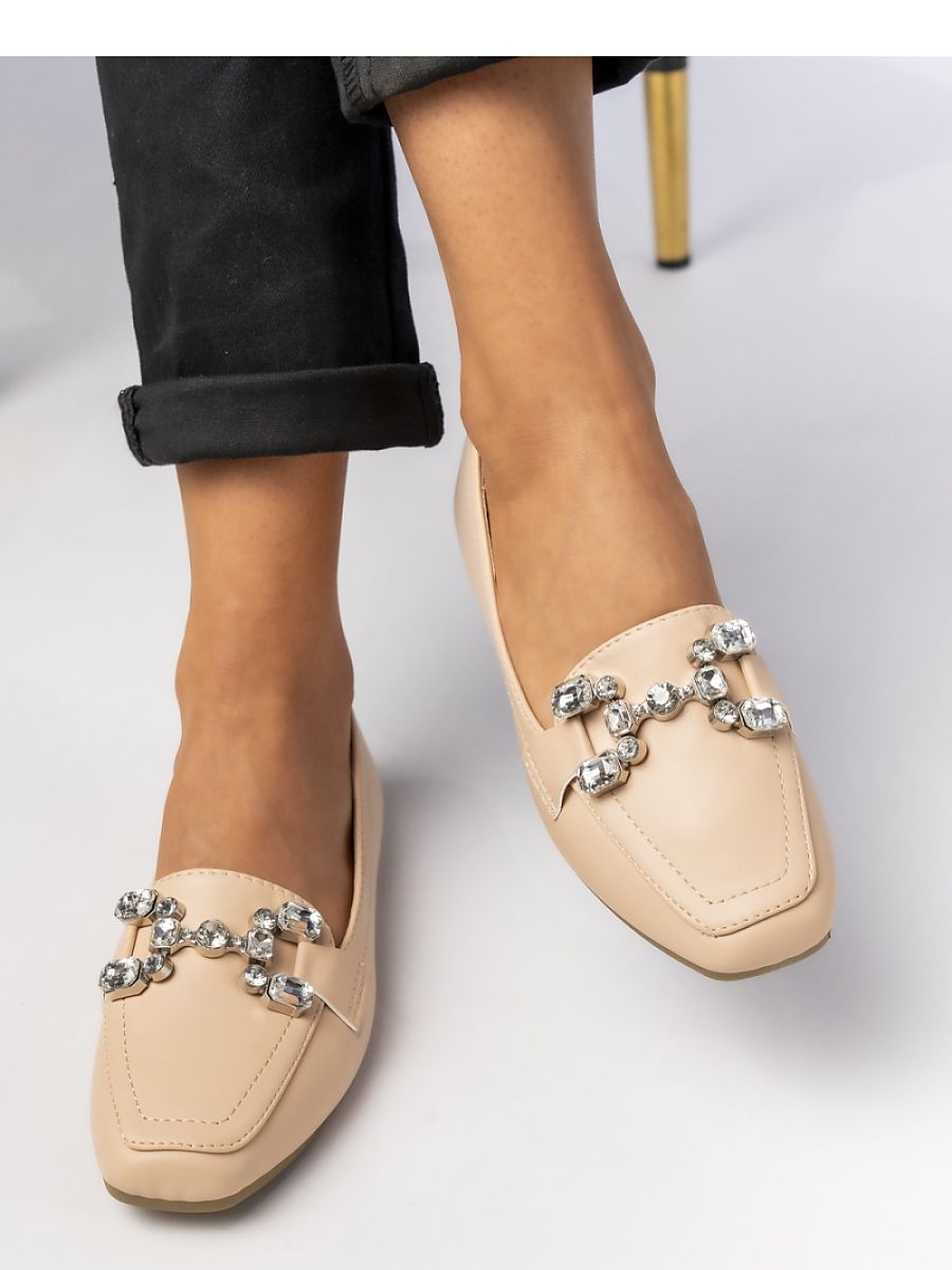 Women’s beige ELEA moccasins are a perfect combination of elegance and comfort. The classic design is complemented by a spectacular, jewelry-like decoration that gives them a luxurious character. Perfect for both everyday wear and special occasions. The slip-on model provides comfort and excellent fit to the foot.