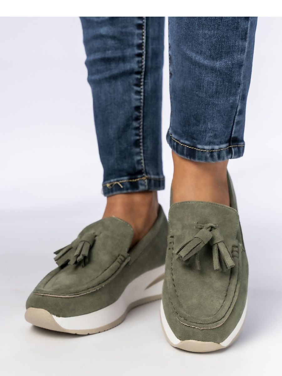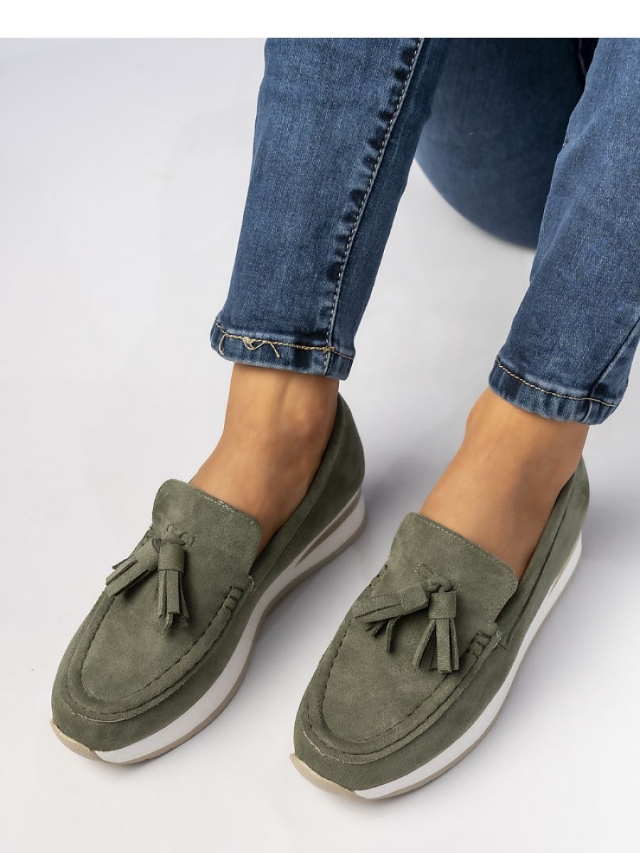 Elegant women’s loafers on a comfortable, lightweight sole. Made of soft suede, decorated with fashionable fringes, adding a unique character to them. Perfect for everyday stylizations and elegant outfits.