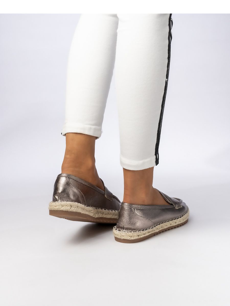 Elegant women’s moccasins in taupe shade are a stylish proposal for everyday wear. Their subtle shine and braided sole give them character, and the classic slip-on construction guarantees comfort. This model is made of high-quality synthetic leather, ensuring durability and comfort of use. They will work perfectly in both casual and more elegant stylizations.