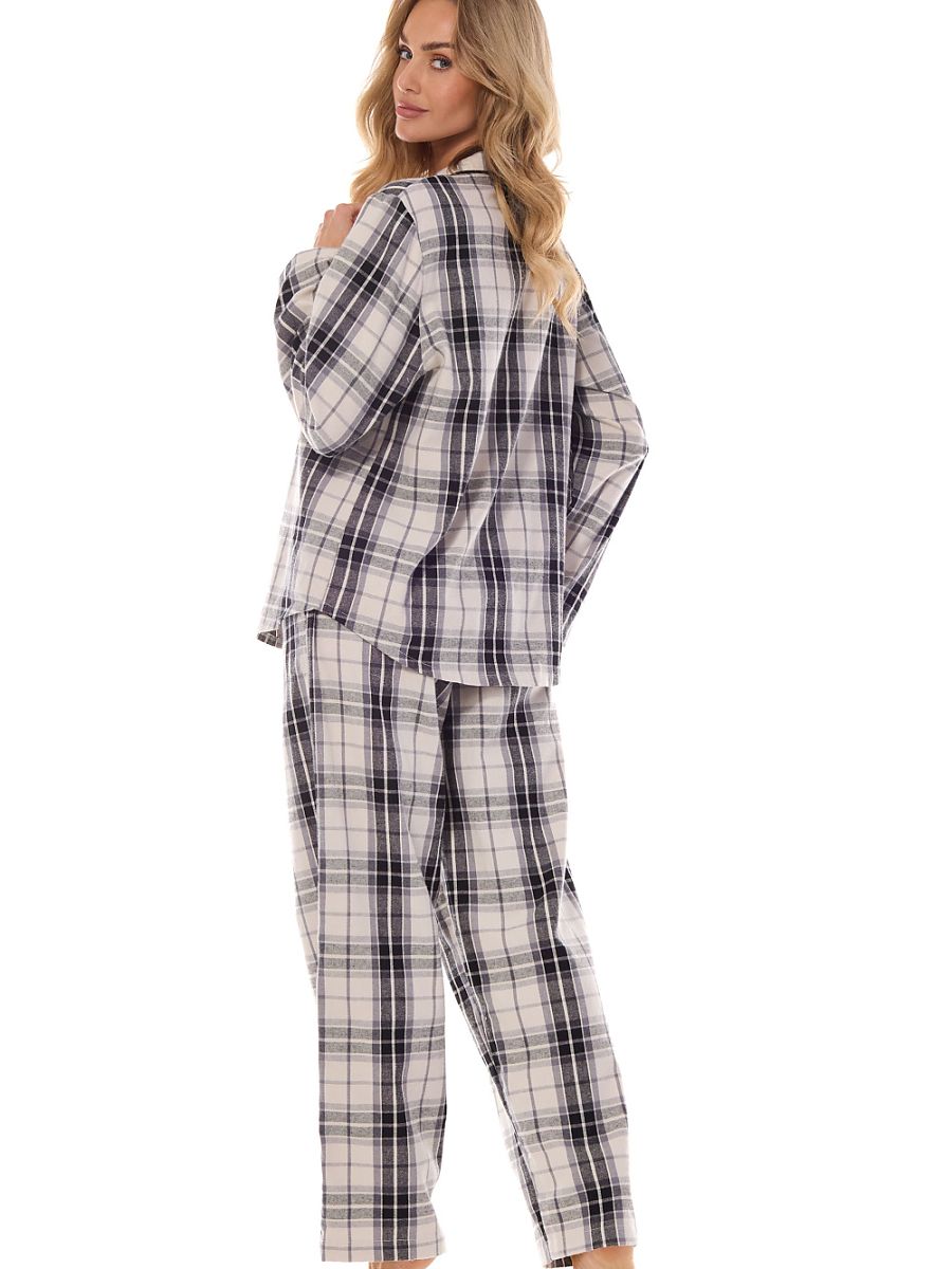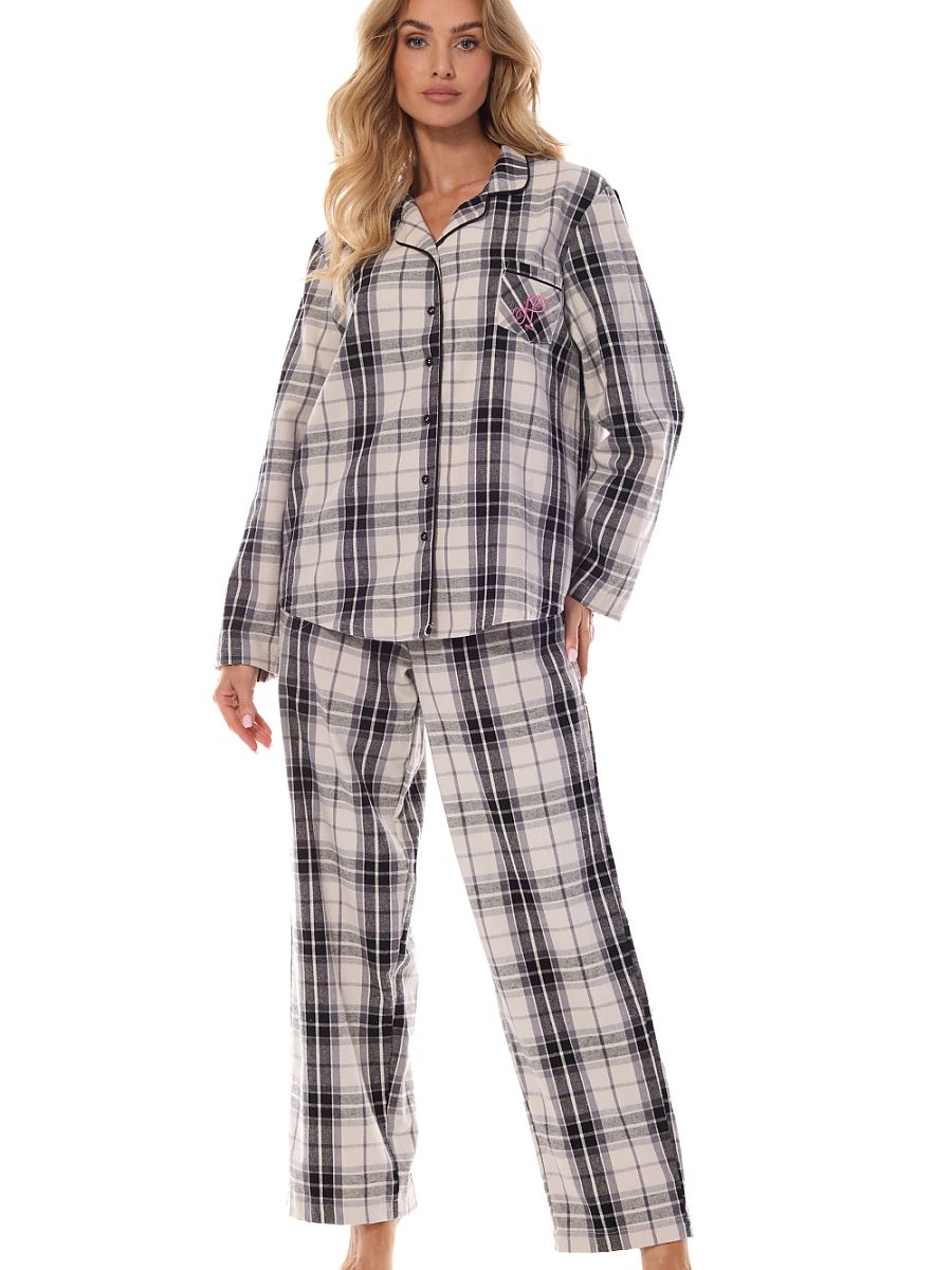 This unique women’s pajama combines elegant design with the highest comfort of use. The long-sleeved shirt, buttoned up, stands out with stylish finishing in the form of delicate piping and embroidery at chest height. An additional pocket on the chest emphasizes its practicality and unique character. Made of material with a trendy check print, the pajamas look stylish and versatile. Pants with long legs, pockets, and an elastic waistband provide comfort and freedom of movement. The loose, comfortable cut of the whole makes it perfect not only as sleepwear, but also as an elegant element of homewear. The shirt sleeves and pants legs are finished with cuffs, adding a touch of elegance. Packed in an elegant pouch, it is a perfect gift idea for a loved one. Designed and sewn in Poland, the pajamas guarantee high quality and meticulous workmanship, meeting the expectations of even the most demanding women. An ideal choice for every season!