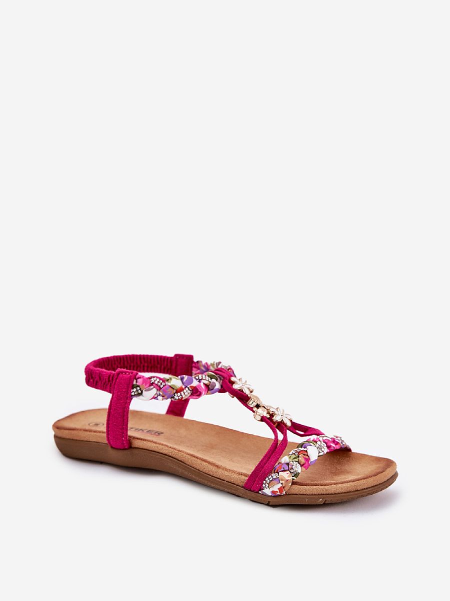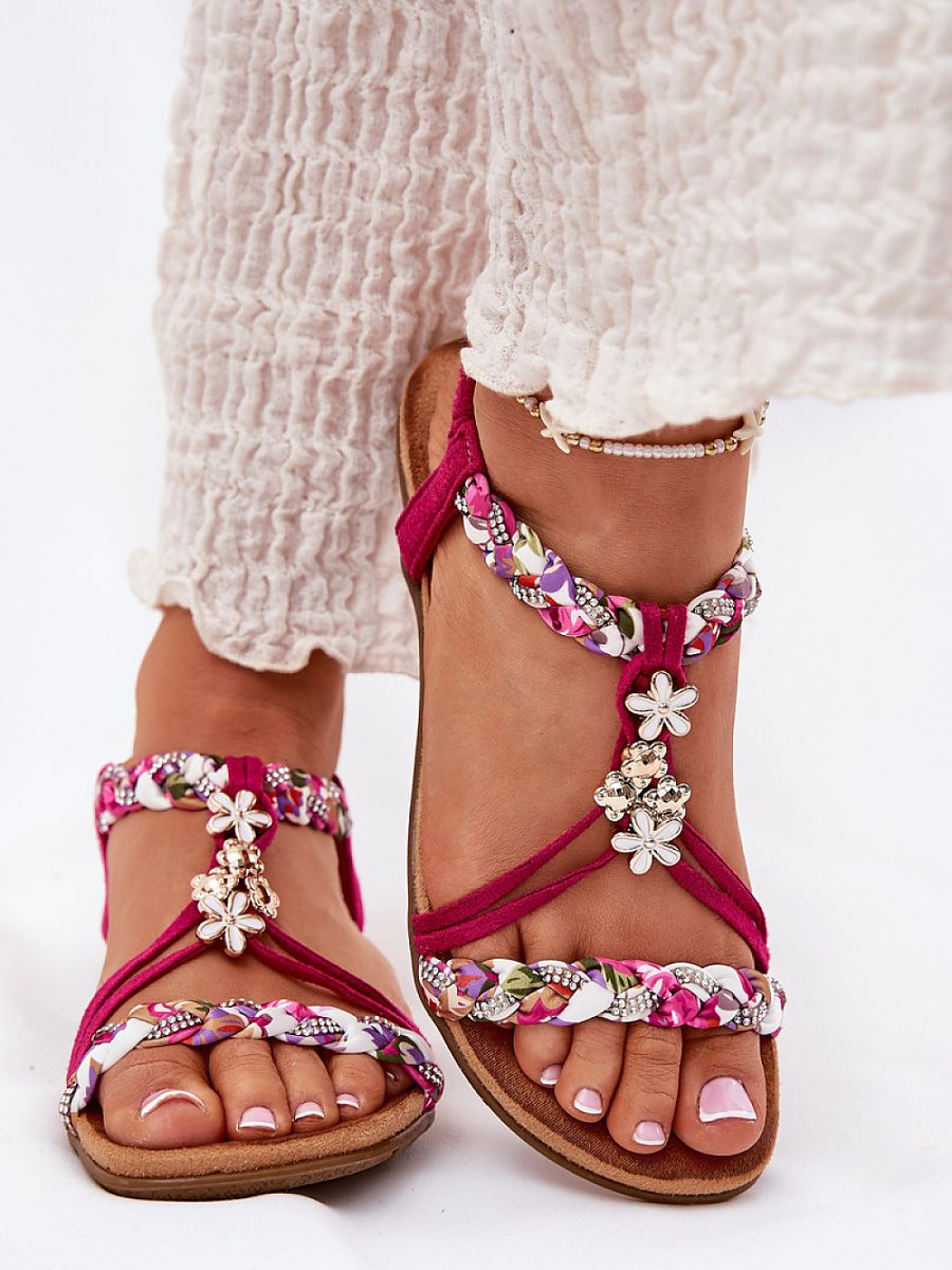 Women’s sandals made of a combination of eco suede and fabric are a perfect choice for warm days. This model stands out with braided straps, subtle decorations and sparkling zircons, which add a unique charm. The flat sole and soft insole provide comfort throughout the day. These sandals perfectly complement summer stylizations, giving them lightness and a fashionable accent. Perfect for everyday outings!